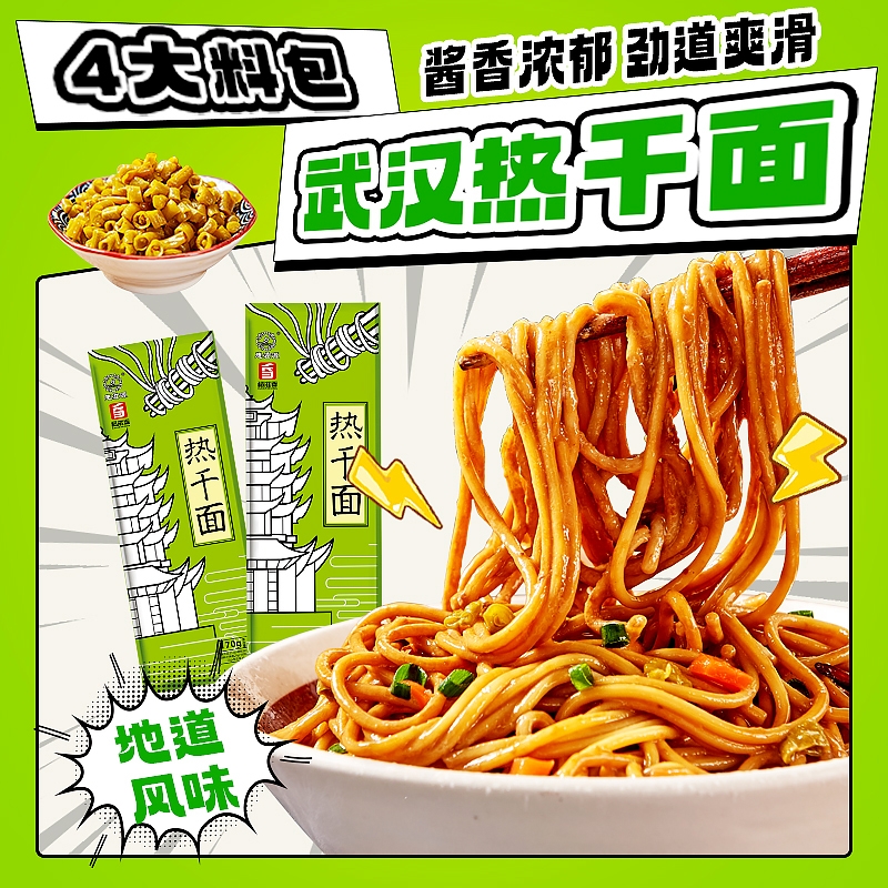 武汉特色热干面湖北特产信阳早餐挂面武汉特色碱水面拌面速食夜宵