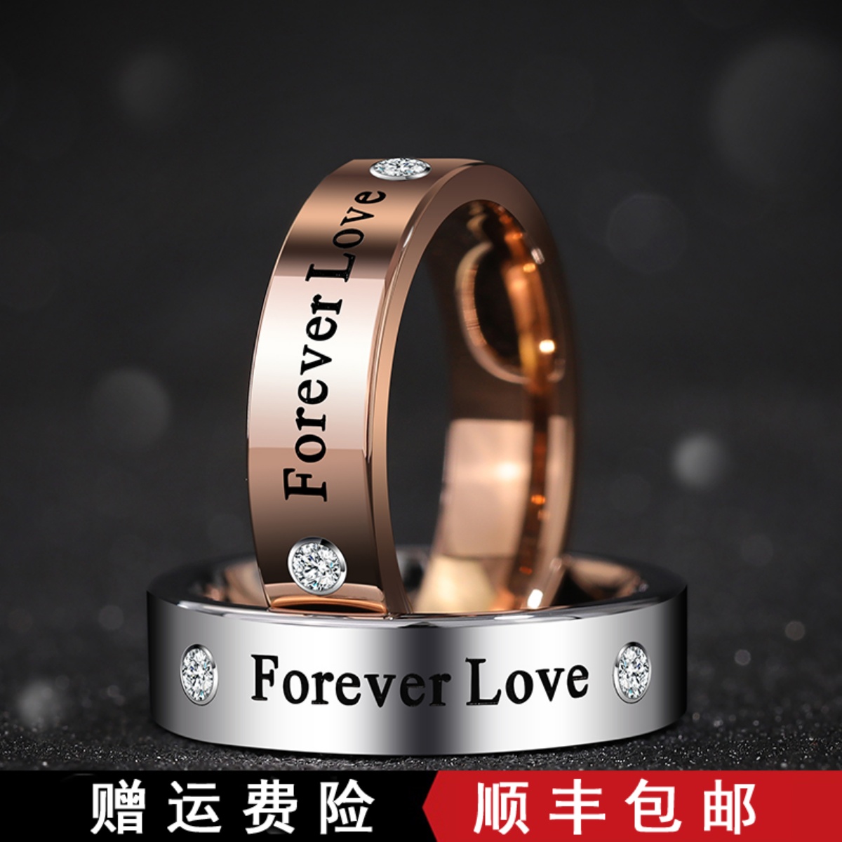 钨金男女士戒指 简约韩版情侣戒指对戒个性刻字光面尾戒 钨钢指环