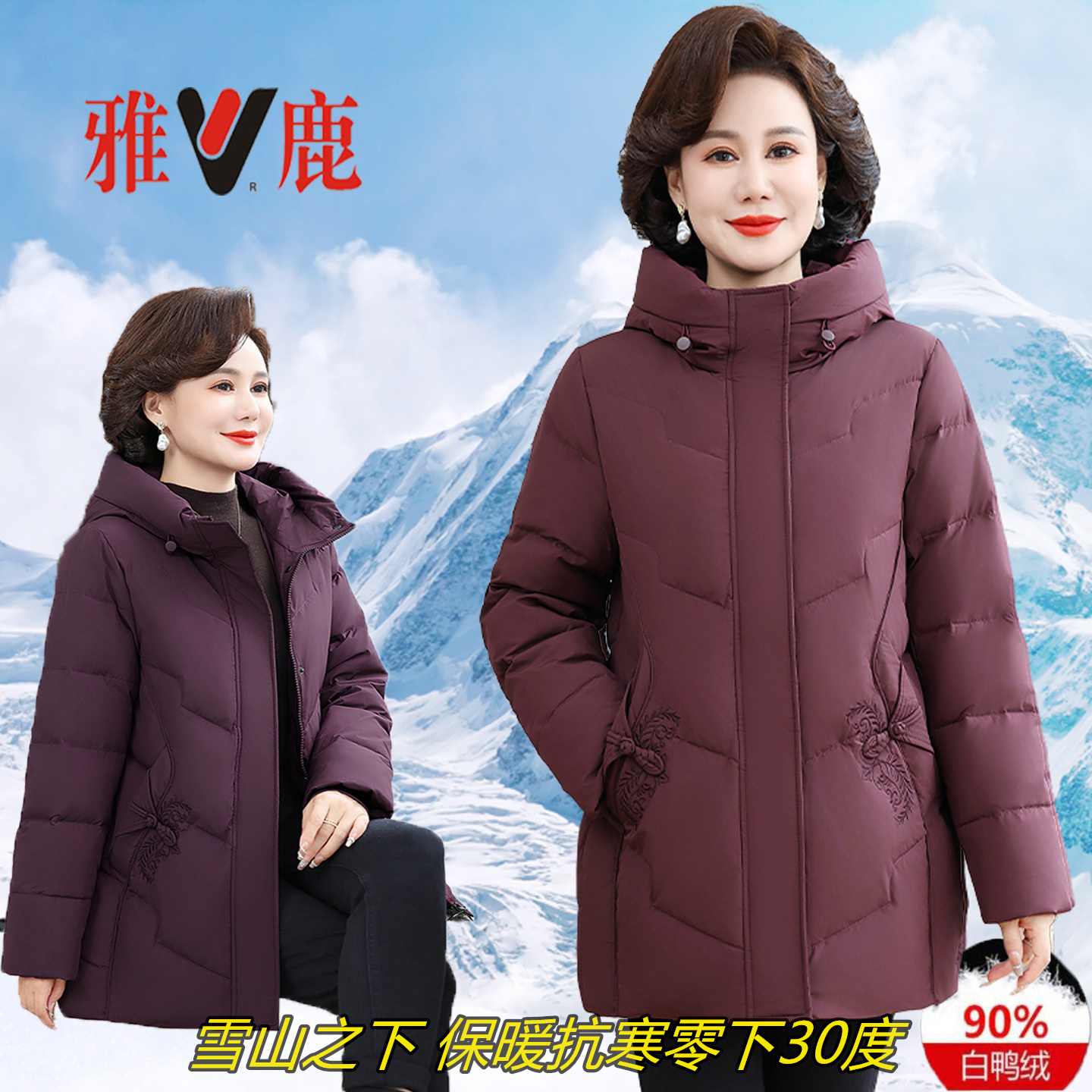 正品雅鹿羽绒服女士冬季2025年新款老年妈妈装白鸭绒加厚保暖外套