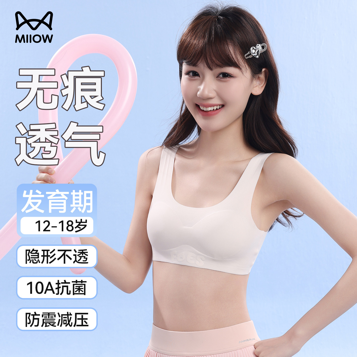 猫人少女内衣初中高中学生发育期隐形粉底液文胸无钢圈运动背心女