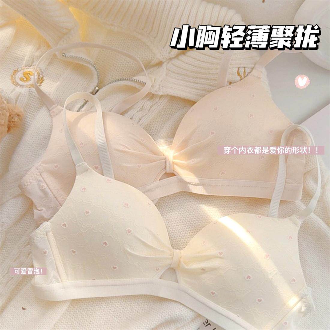 芝芝奶心 薄款聚拢内衣女上托防垂纯欲无钢圈甜美少女学生文胸罩
