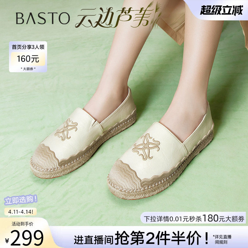 【云边芦苇】百思图春新款小香风草编渔夫鞋一脚蹬女鞋A0207AA5