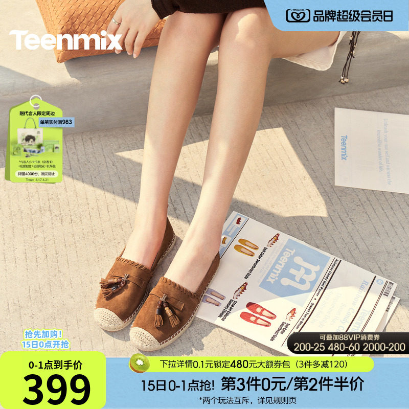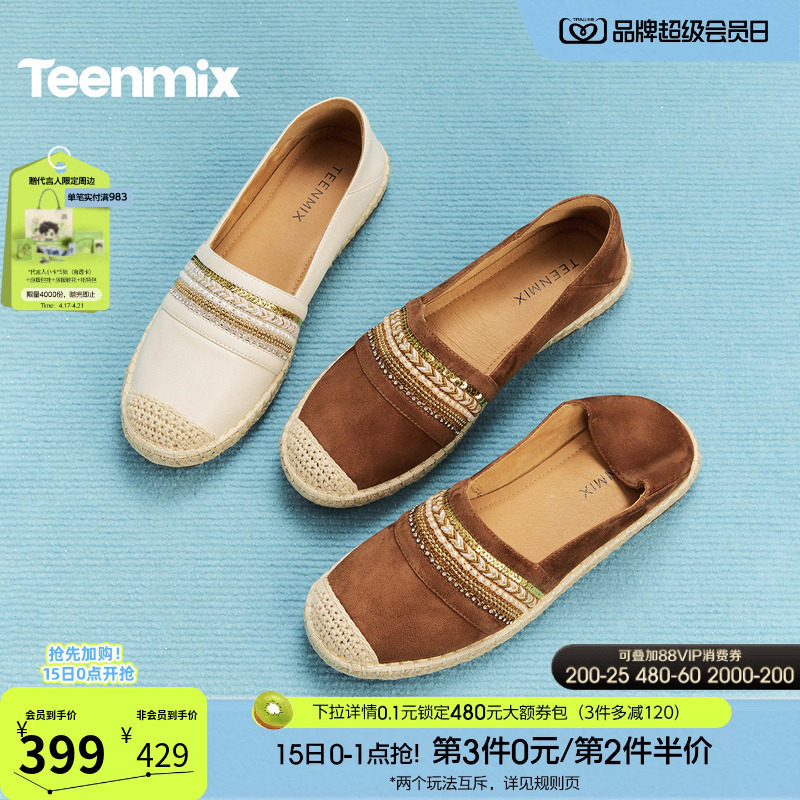 天美意休闲一脚蹬草编渔夫鞋女平底浅口单鞋2026春季新款KP015AA6