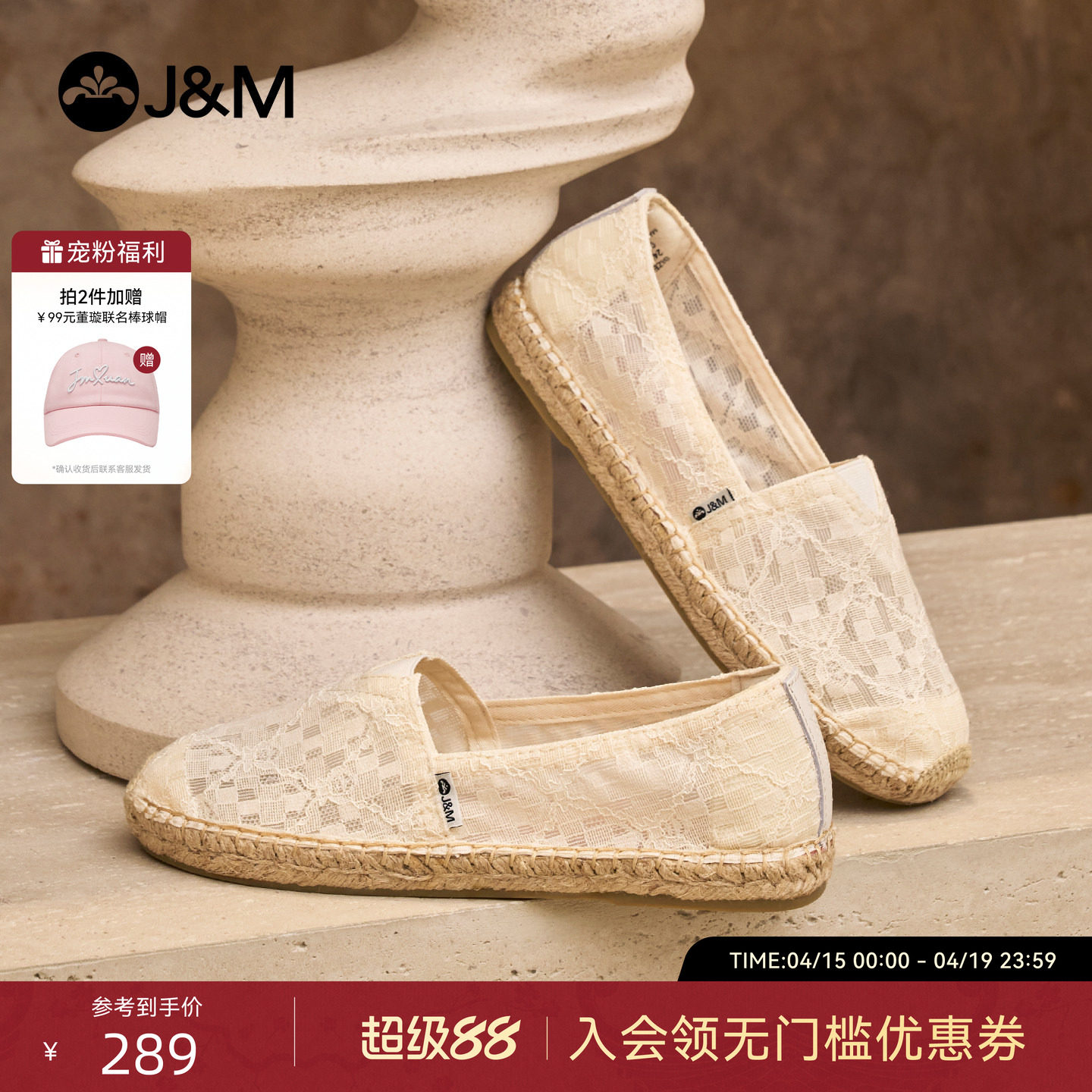快乐玛丽渔夫鞋女2026夏季新款一脚蹬网纱蕾丝平底草编布鞋单鞋