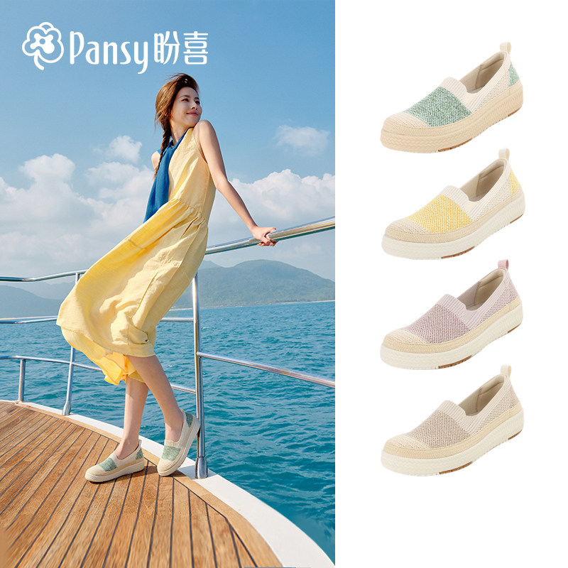 Pansy盼喜渔夫鞋网面透气轻便舒适不累脚一脚蹬百搭平底单鞋