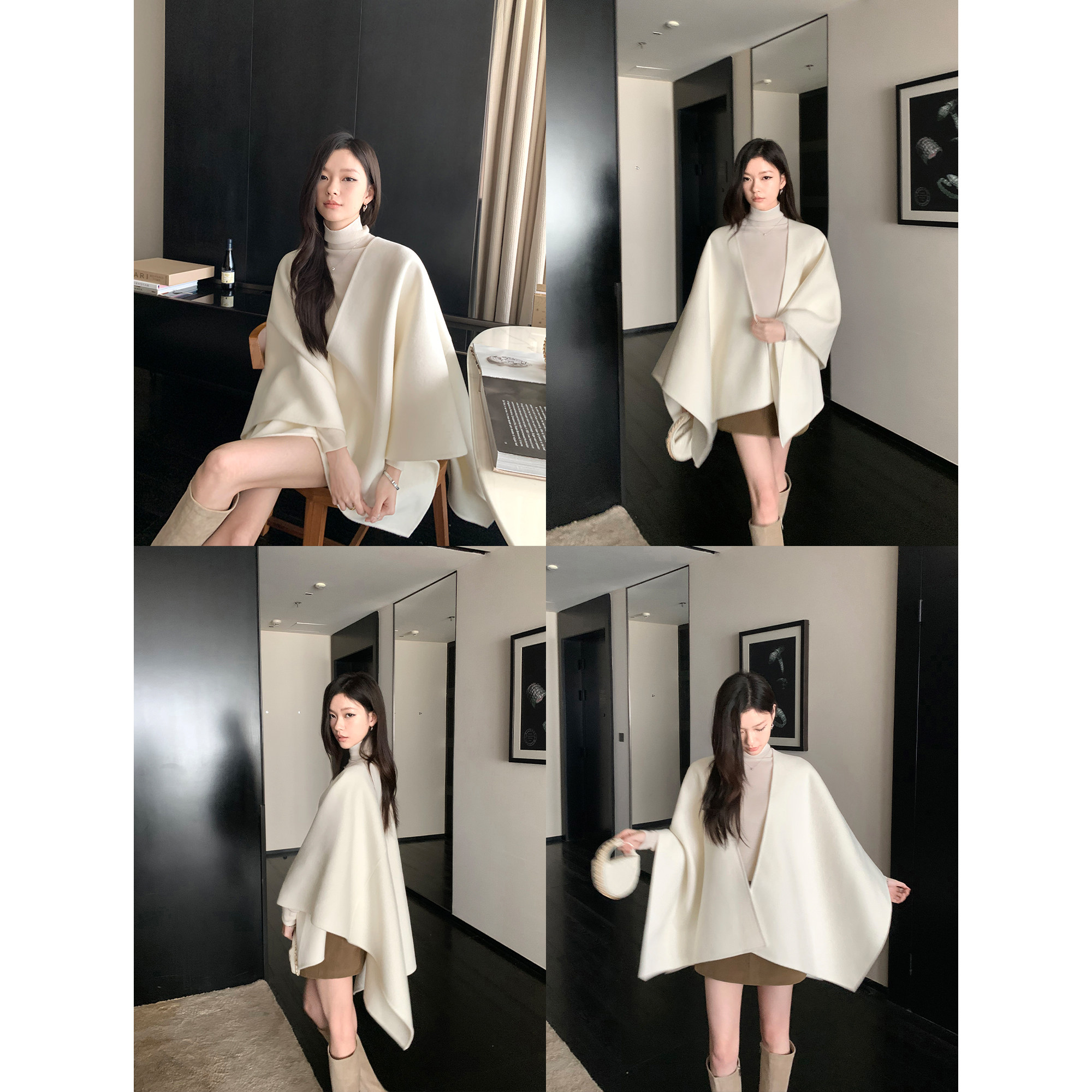 pusumede 富家千金 高级感羊毛双面呢斗篷外套女宽松慵懒呢子披肩