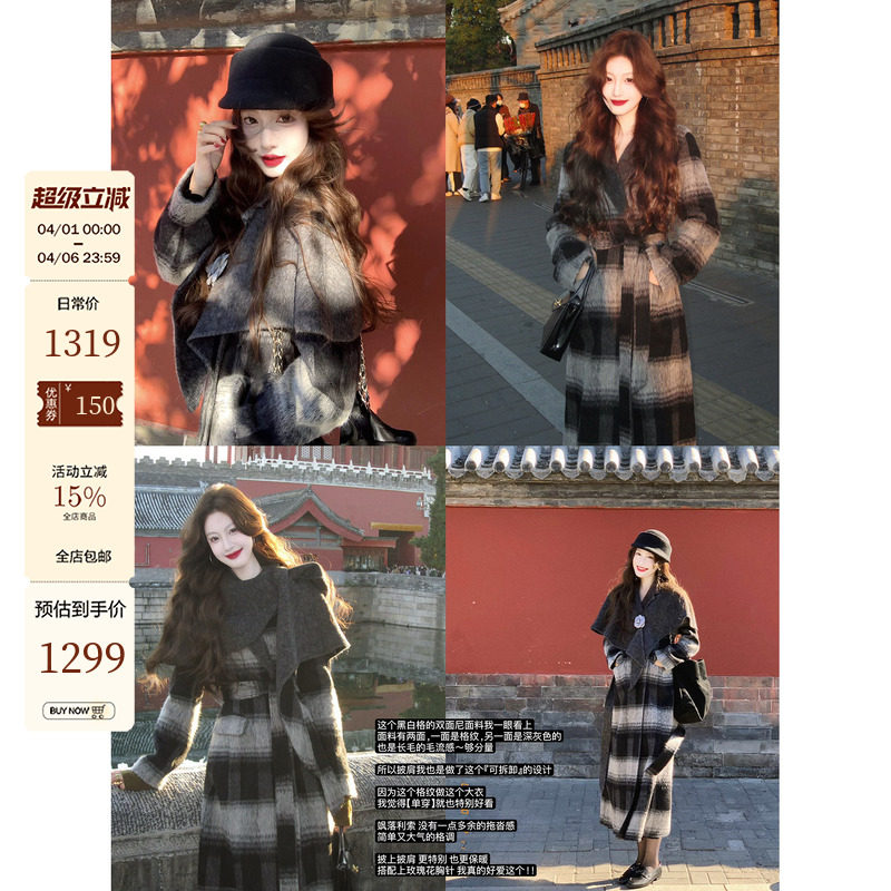 现货150券【雪境】斗篷披肩气质轻奢羊毛双面呢外套格纹大衣冬季