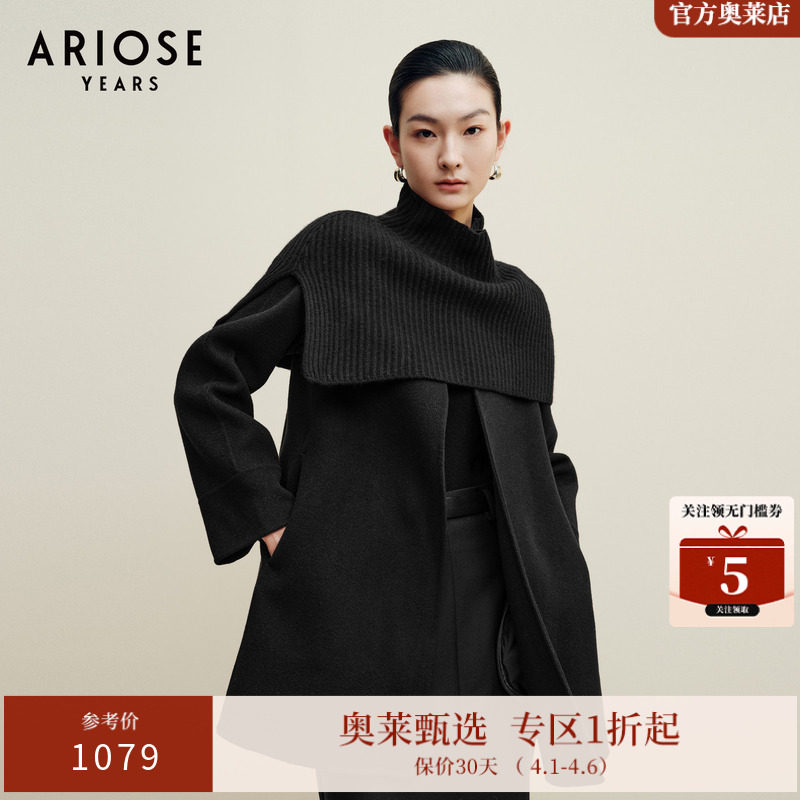 ARIOSEYEARS100%绵羊毛设计感双面呢大衣女斗篷披肩外套冬3102239
