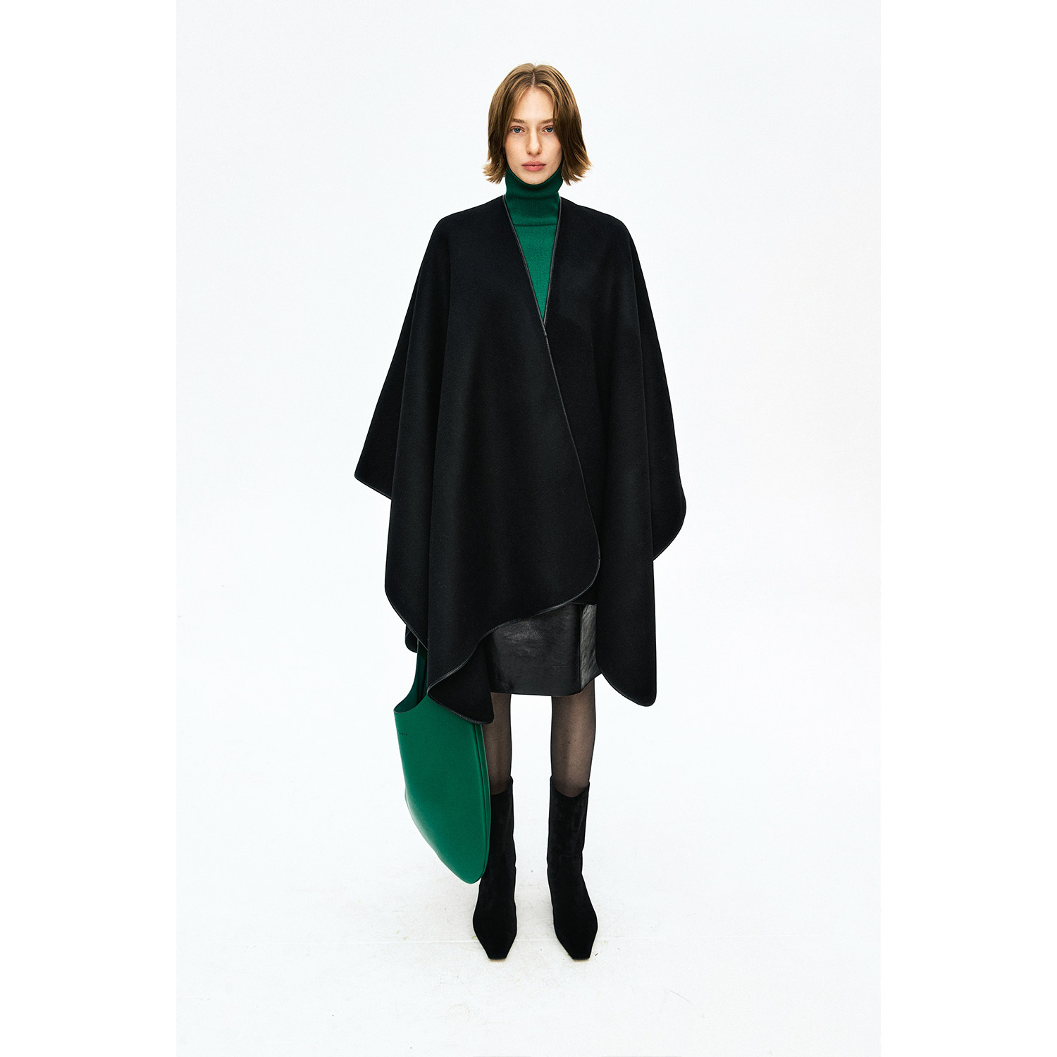 MRS Studios 时髦造型贵妇真皮绵羊皮包边羊毛羊绒双面呢斗篷披肩
