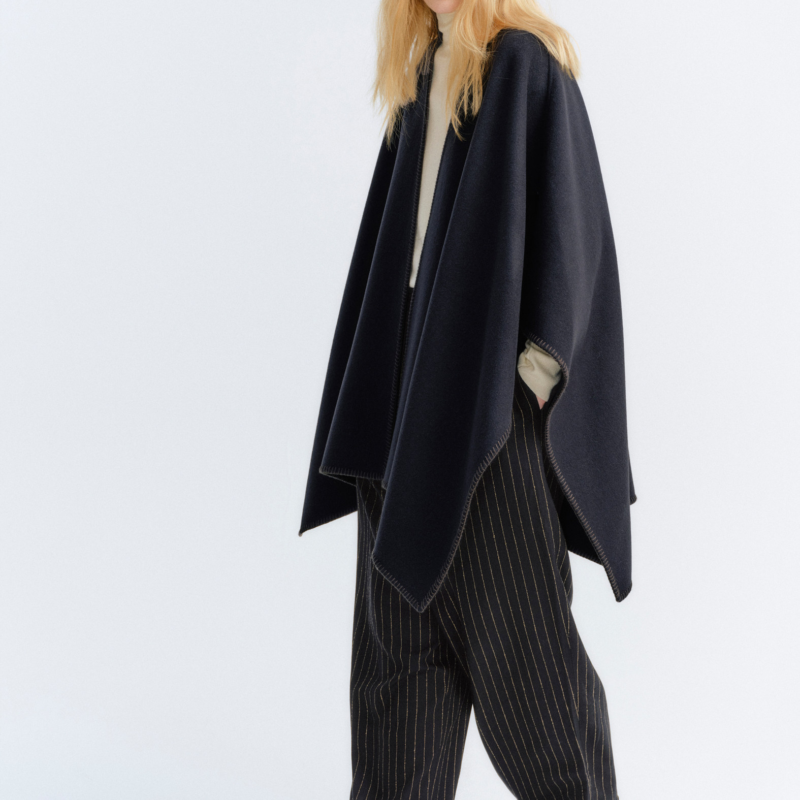 FIVE PLUS高质感绵羊毛披肩领斗篷显瘦双面呢大衣25新款毛呢外套