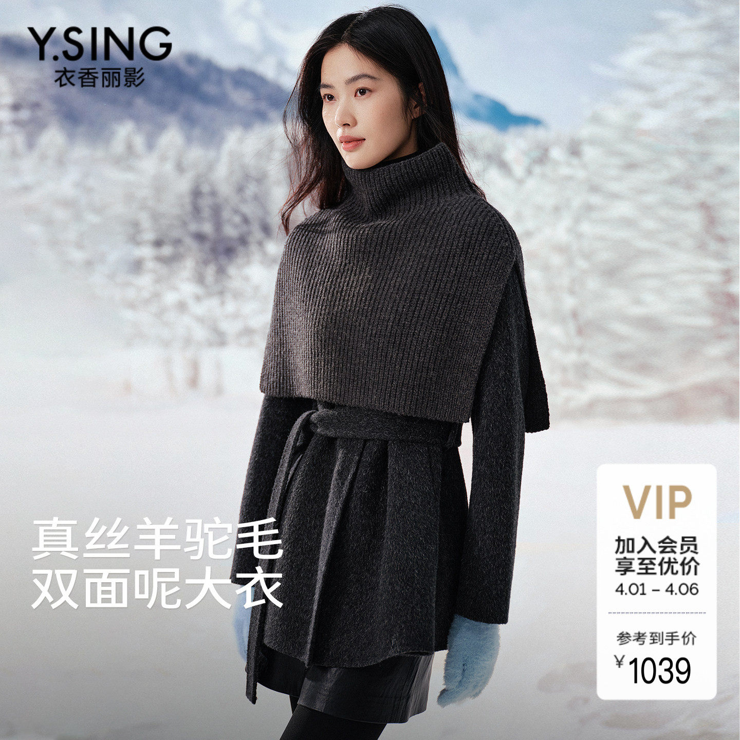 沫晗依美巴黎2025冬季新款可脱卸针织披肩含天丝羊毛双面呢大衣女