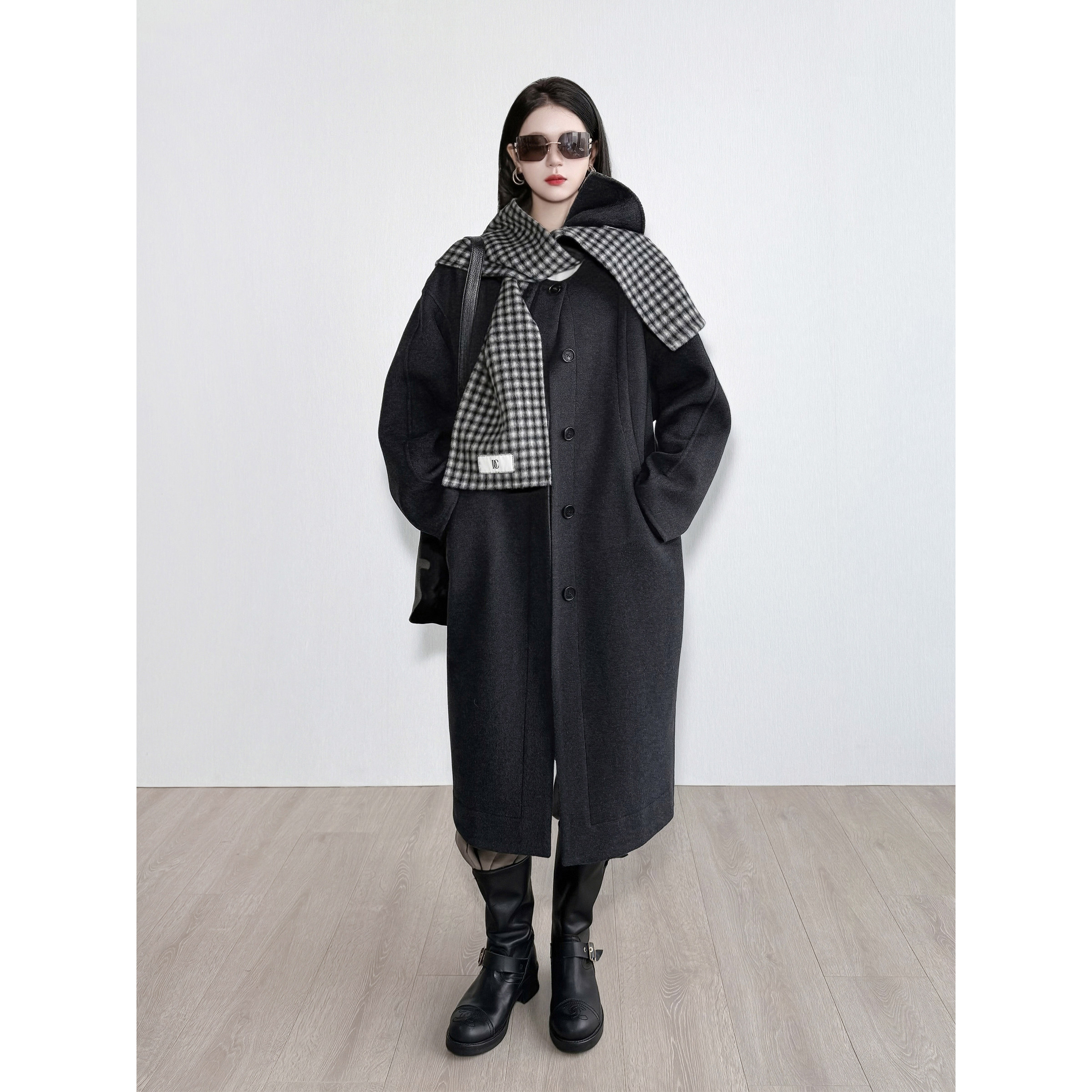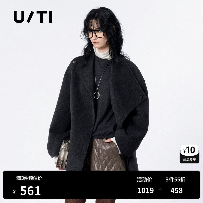 U/TI深灰色静奢披肩绵羊毛大衣女轻奢双面呢外套尤缇时尚冬季新款