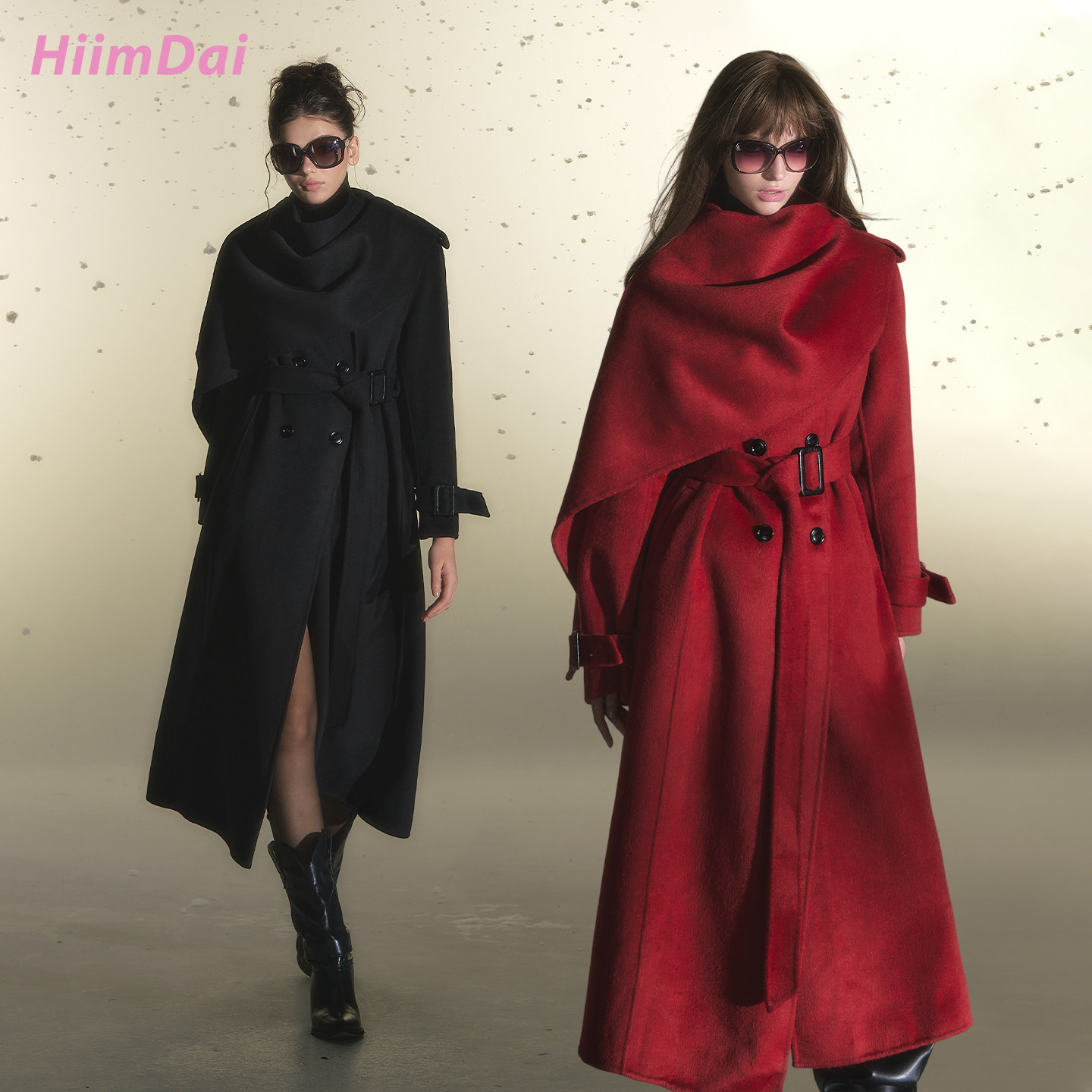 HiimDai【张小婉同款】雪国恋人 大披肩围巾斗篷双面呢羊毛大衣