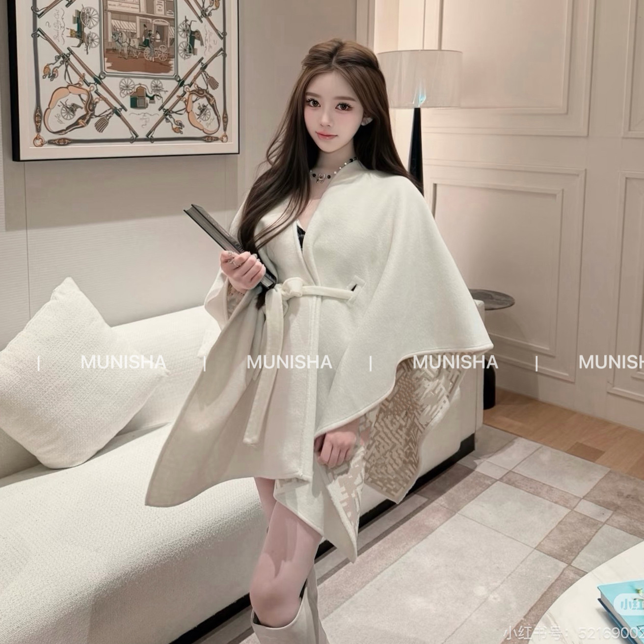 MUNISHA顶配版 富家千金 25S气质羊毛羊绒双面穿斗篷披肩外套女