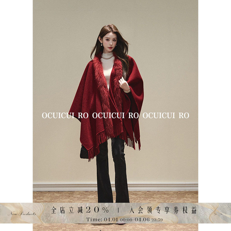 CUICUI崔崔【自在从绒】100%绵羊毛高级感红色双面毛呢披肩大衣女