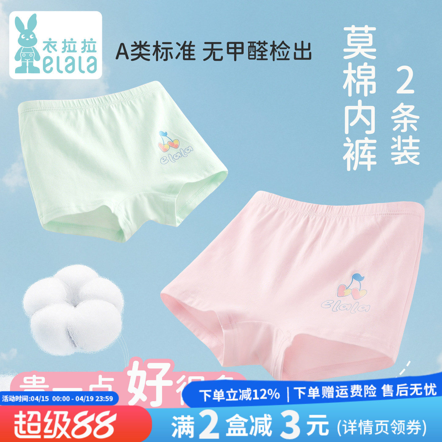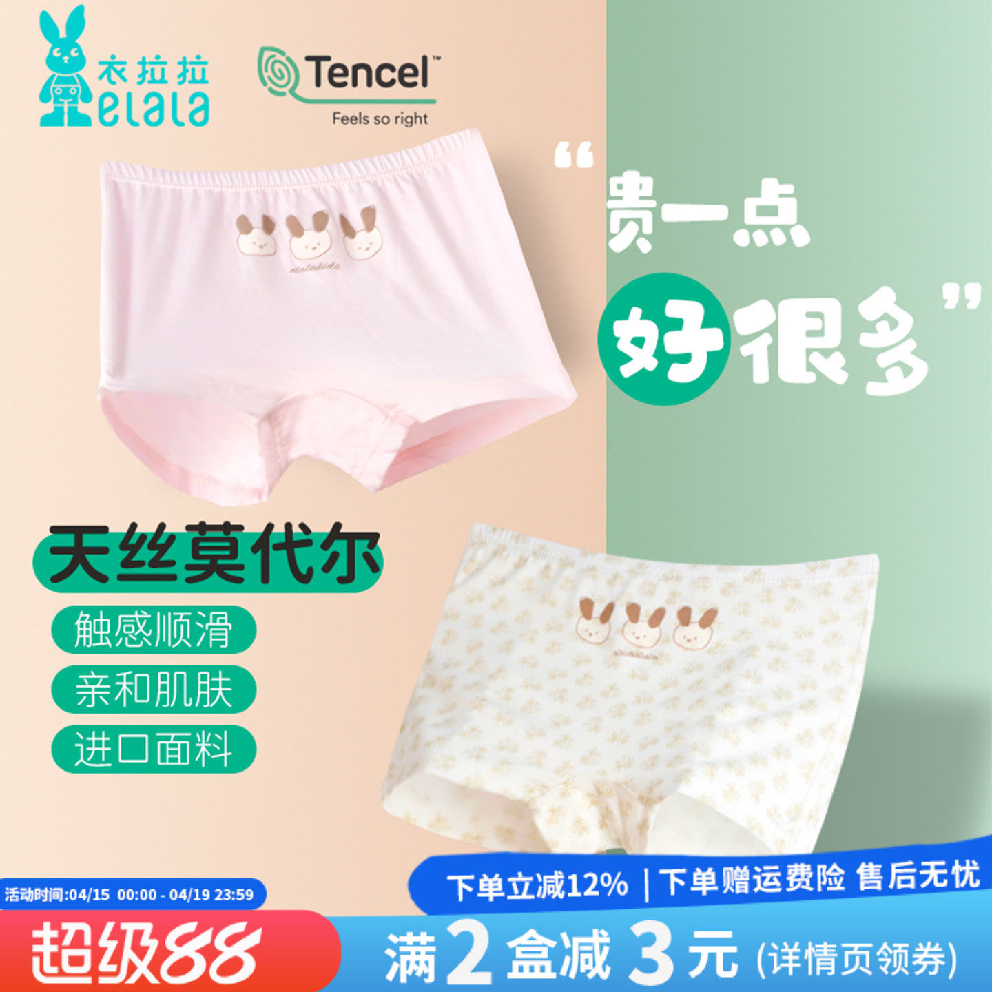 衣拉拉儿童平角内裤天丝莫代尔薄款女童内裤宝宝四角内裤女孩2条