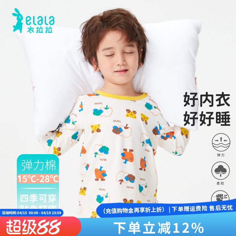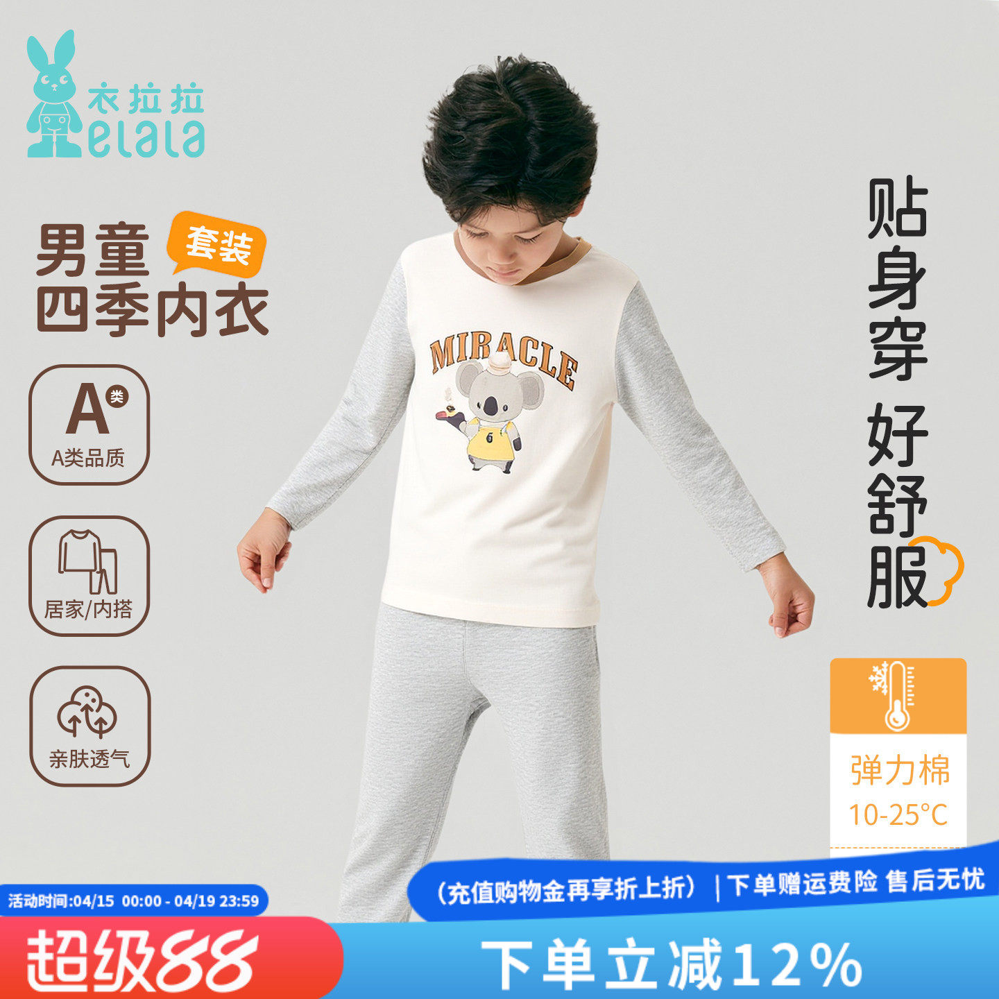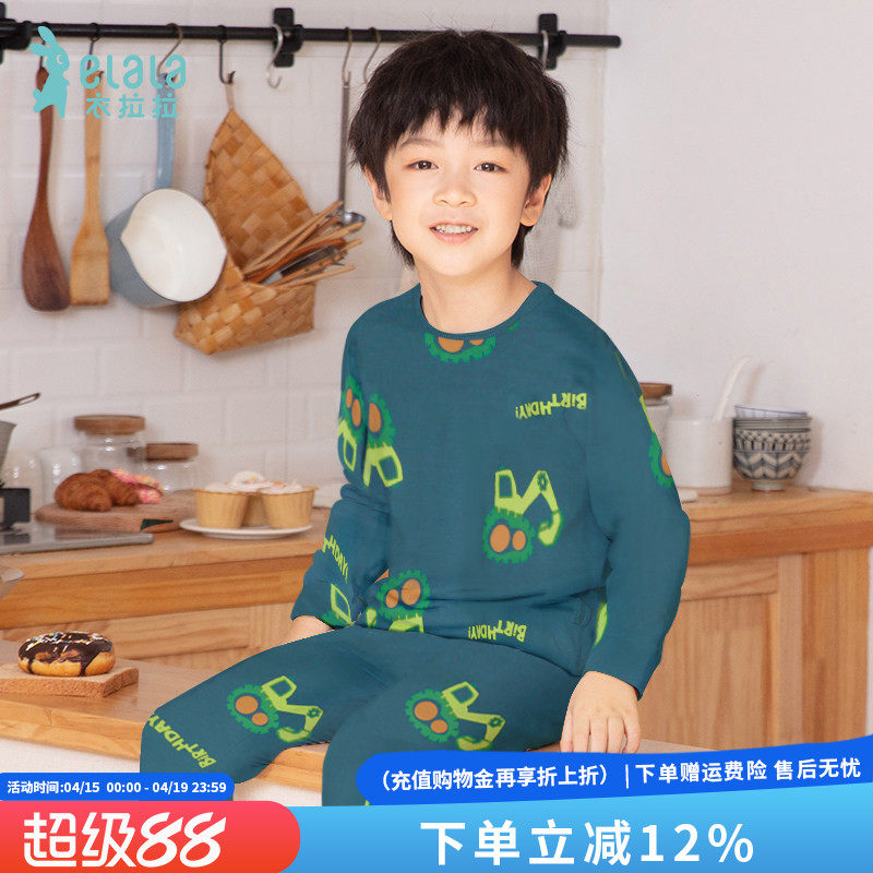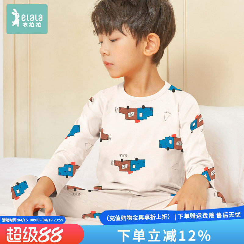 衣拉拉男童秋衣秋裤纯棉儿童内衣套装全棉宝宝睡衣家居服四季可穿