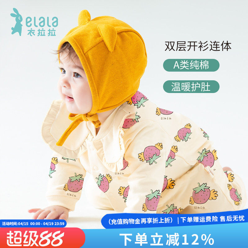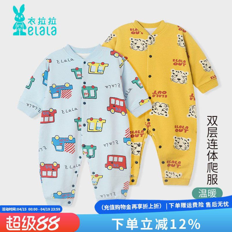 衣拉拉春秋季婴儿双层纯棉连体衣0-1岁女童内衣爬服公主长袖哈衣