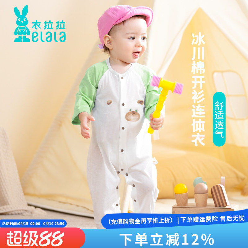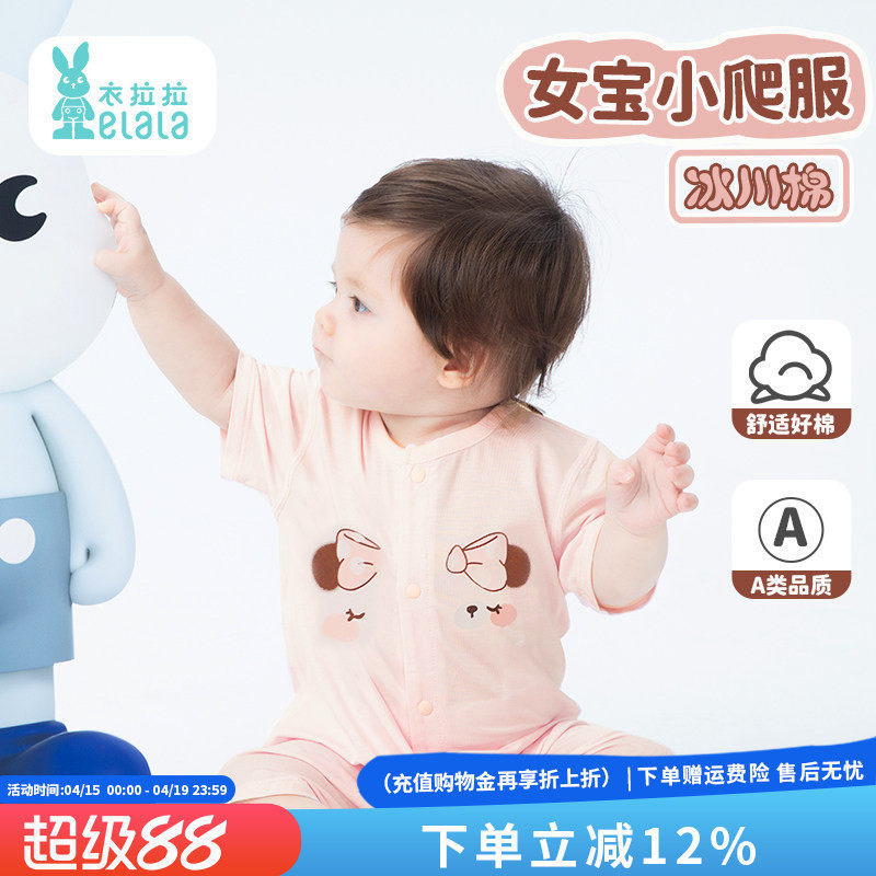 衣拉拉夏季婴儿连体衣短袖冰川棉薄款0-1岁女童纯棉哈衣宝宝爬服
