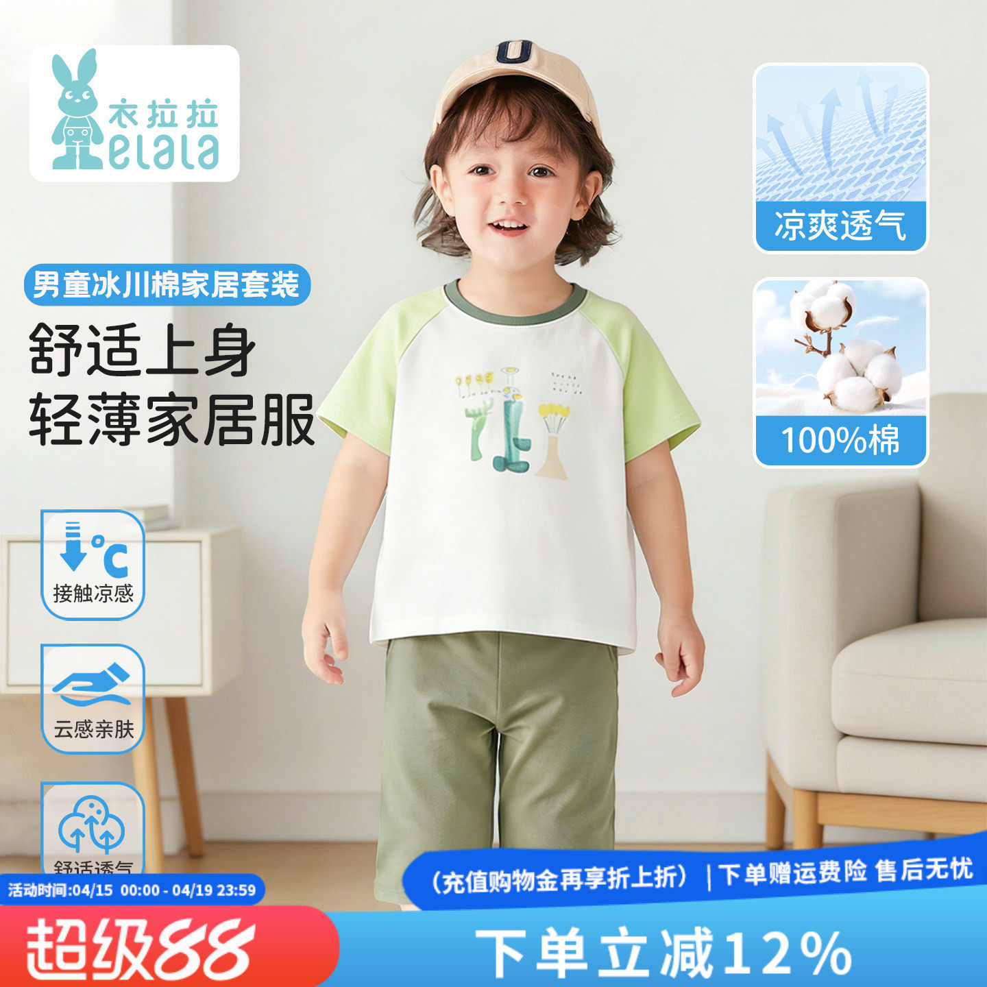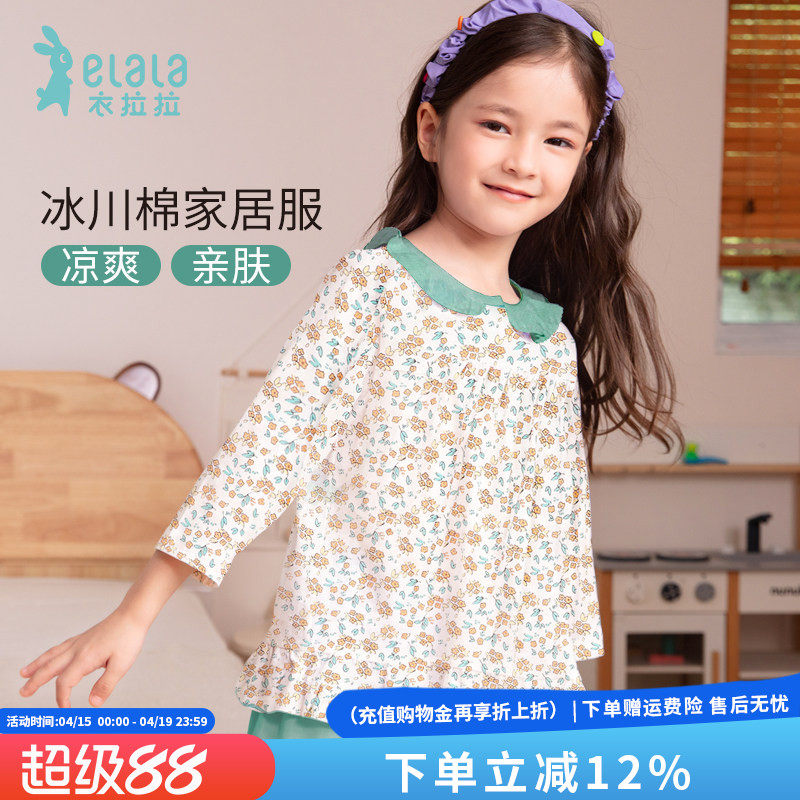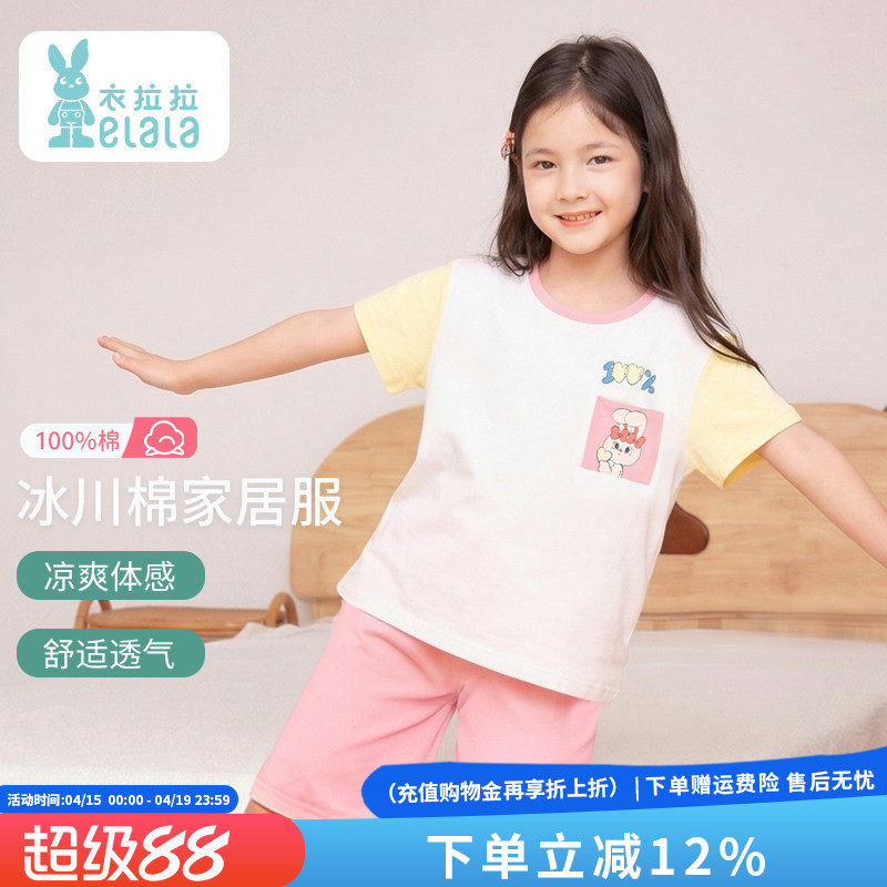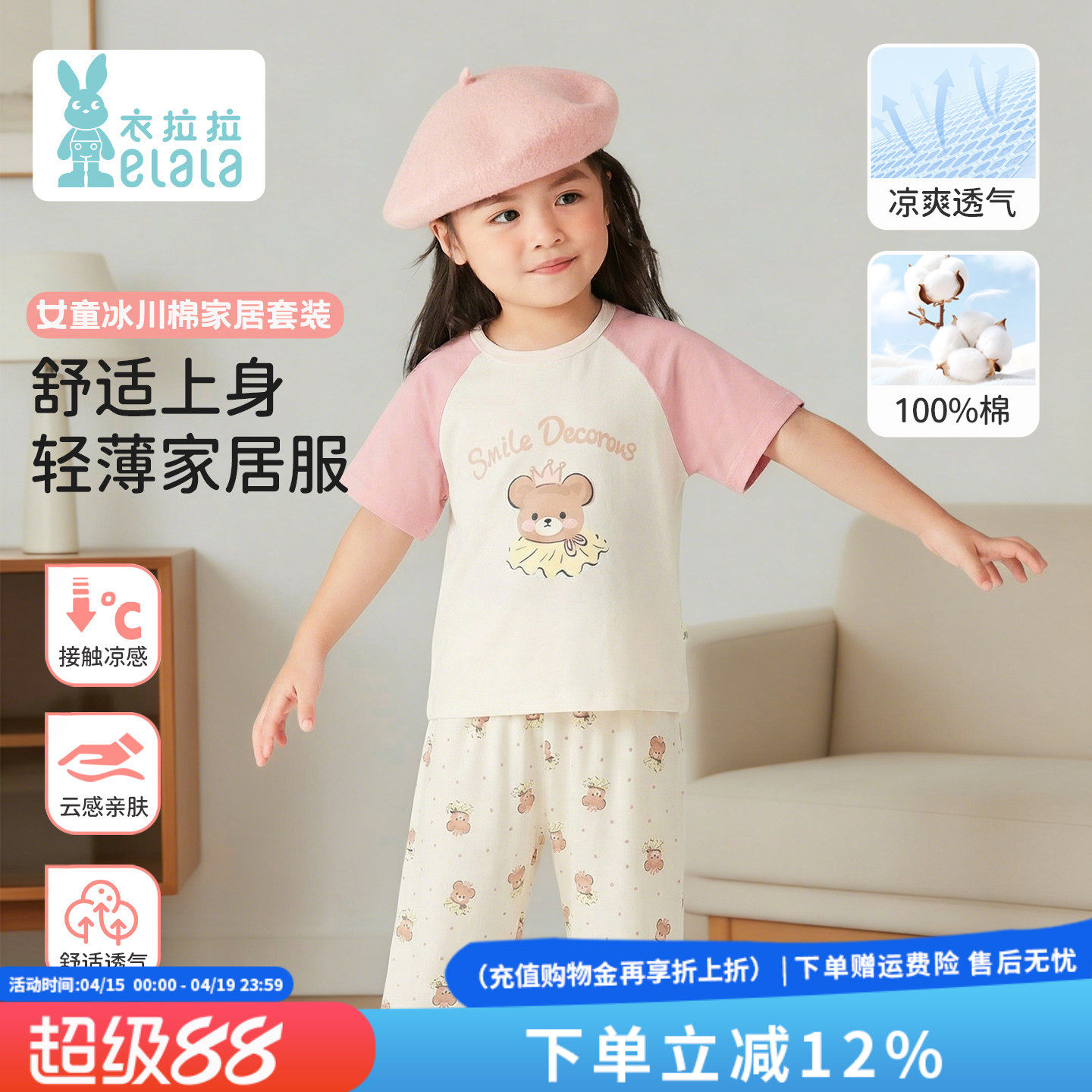衣拉拉2026夏季1-10岁女童纯棉家居服薄款宝宝睡衣冰川棉短袖套装