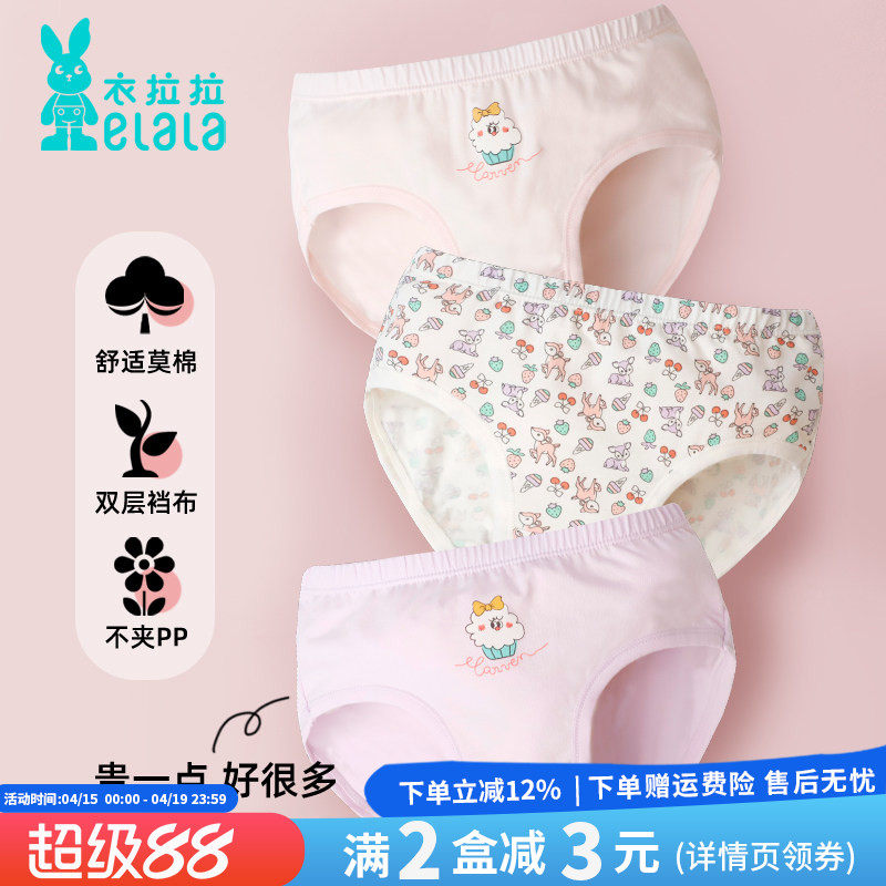 衣拉拉女童三角内裤纯棉宝宝小内裤女生裤头学生短裤儿童内裤2条