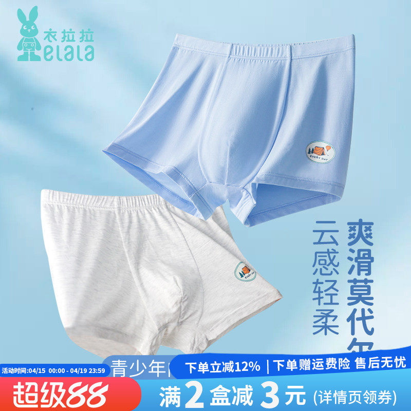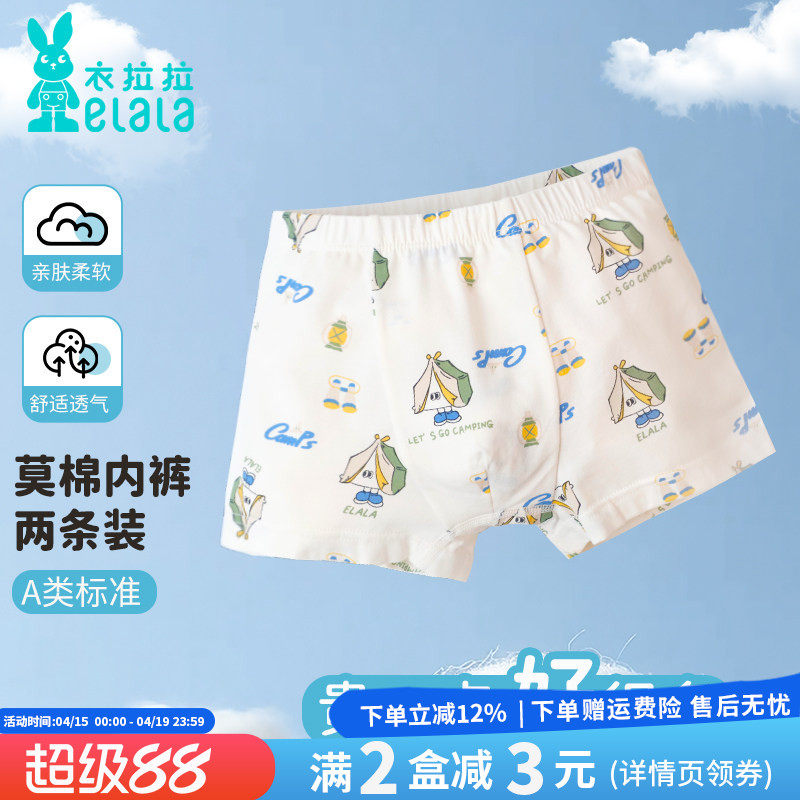 【断码福利】衣拉拉儿童内裤 平角/三角 弹力棉/莫棉/莫代尔 2条