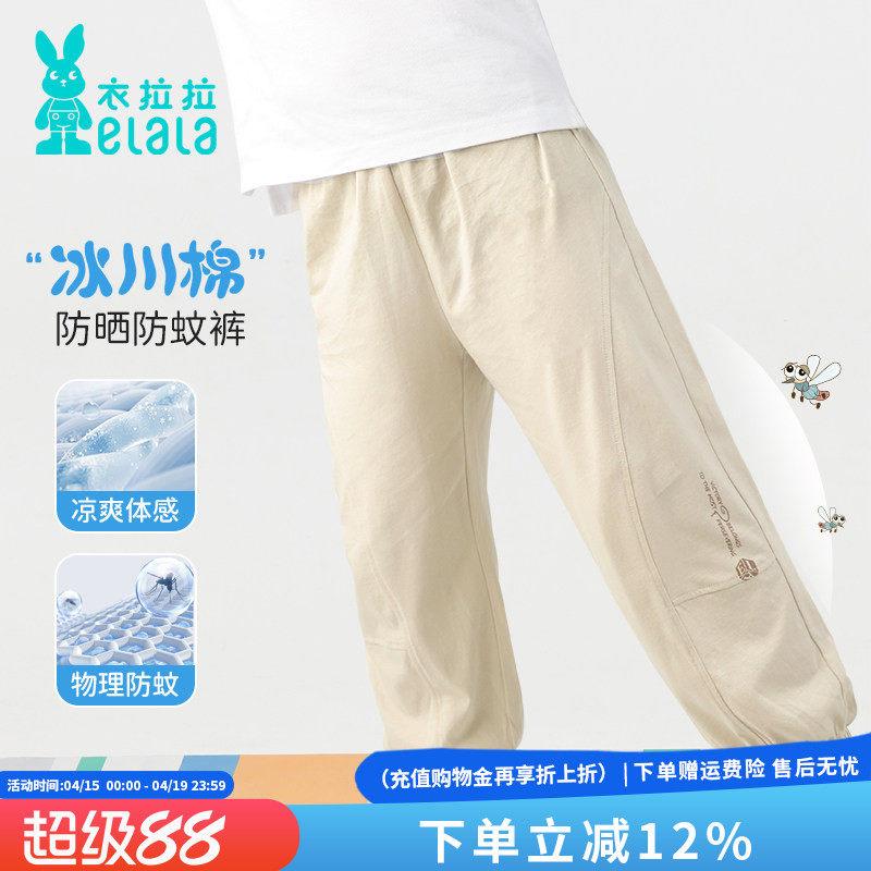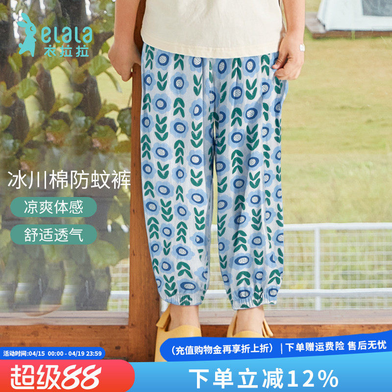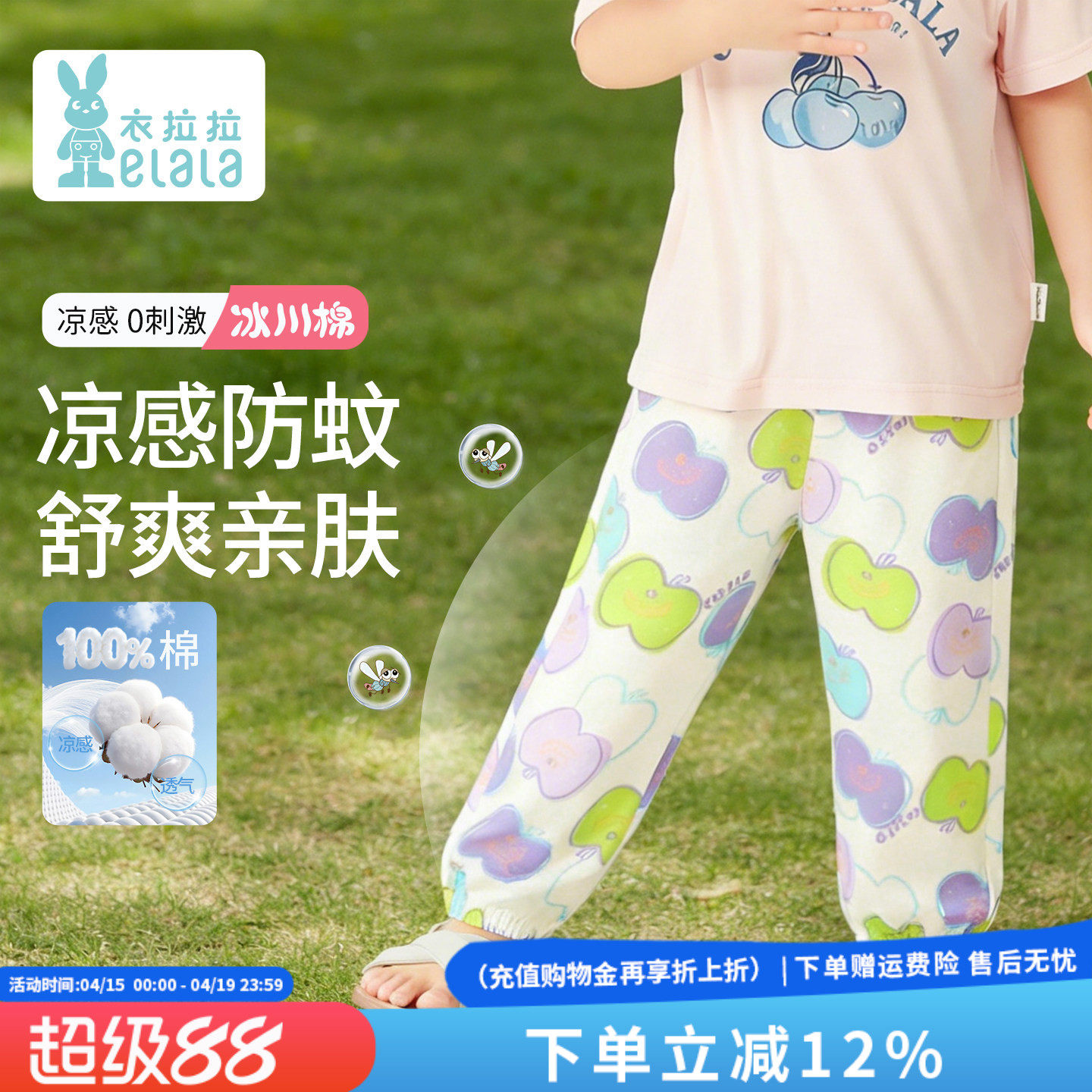 衣拉拉2026夏季儿童冰川棉防蚊裤1-10岁男童女童休闲纯棉薄款裤子