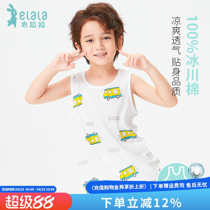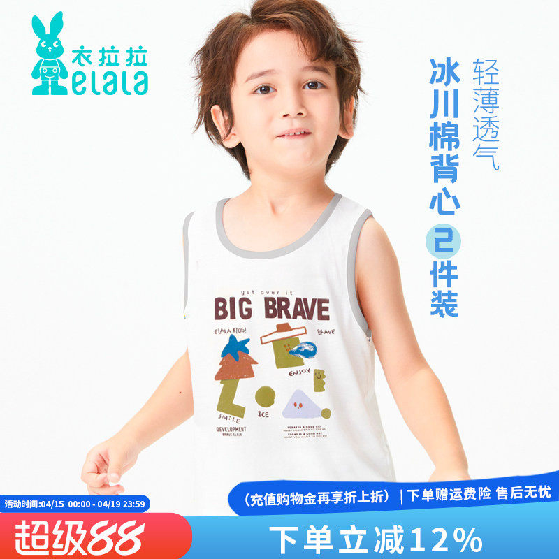 衣拉拉春夏新品男童背心薄款冰川棉儿童无袖坎肩纯棉内穿打底2件