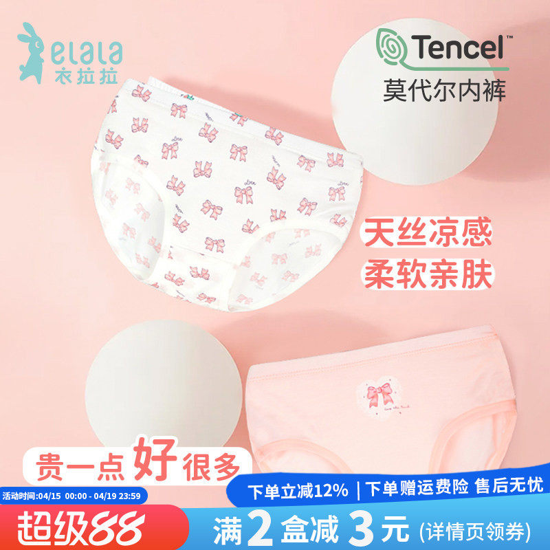 衣拉拉女童内裤儿童三角内裤天丝莫代尔女孩短裤夏天宝宝内裤2条