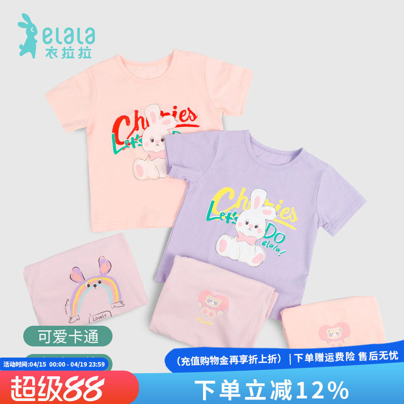 衣拉拉夏季新品1-10岁女童纯棉家居服宝宝睡衣短袖上衣九分裤套装