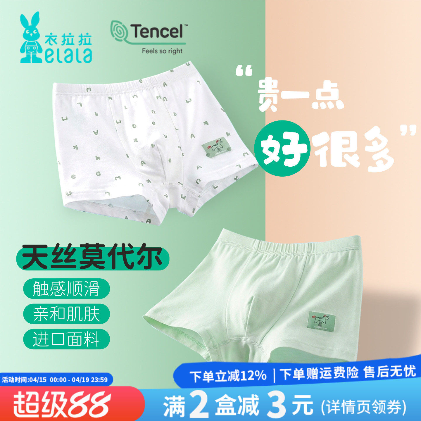 衣拉拉男童平角内裤天丝莫代尔儿童内裤宝宝薄款学生四角短裤2条