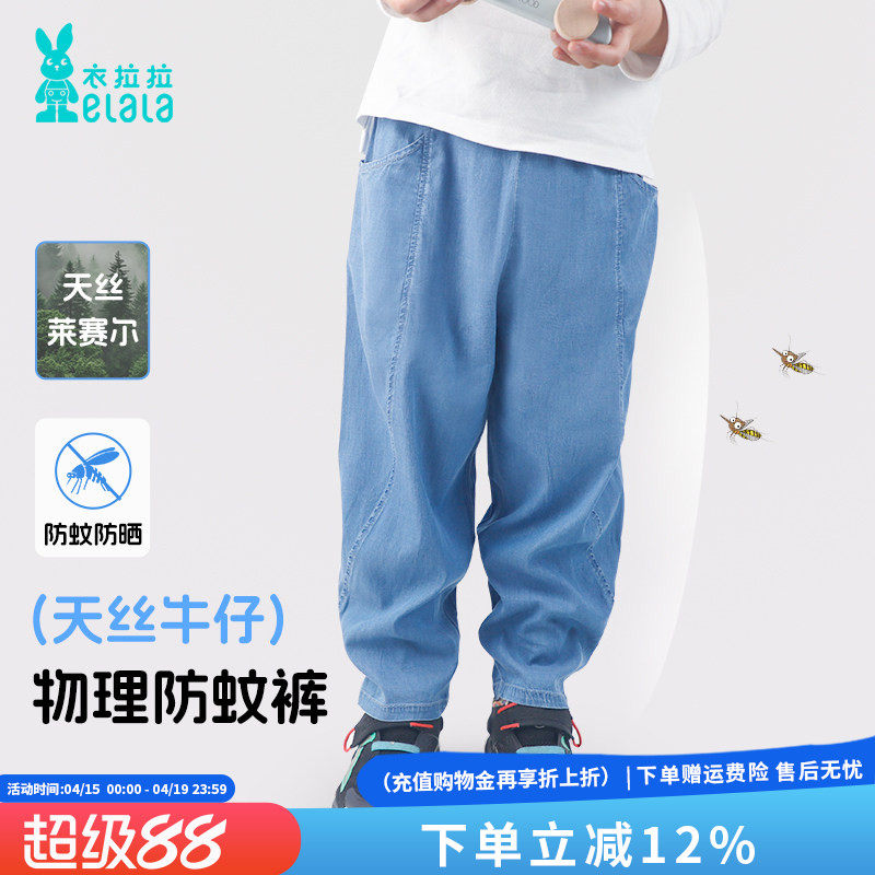 衣拉拉夏季新品儿童天丝牛仔防蚊裤1-10岁男童女童休闲长裤子薄款