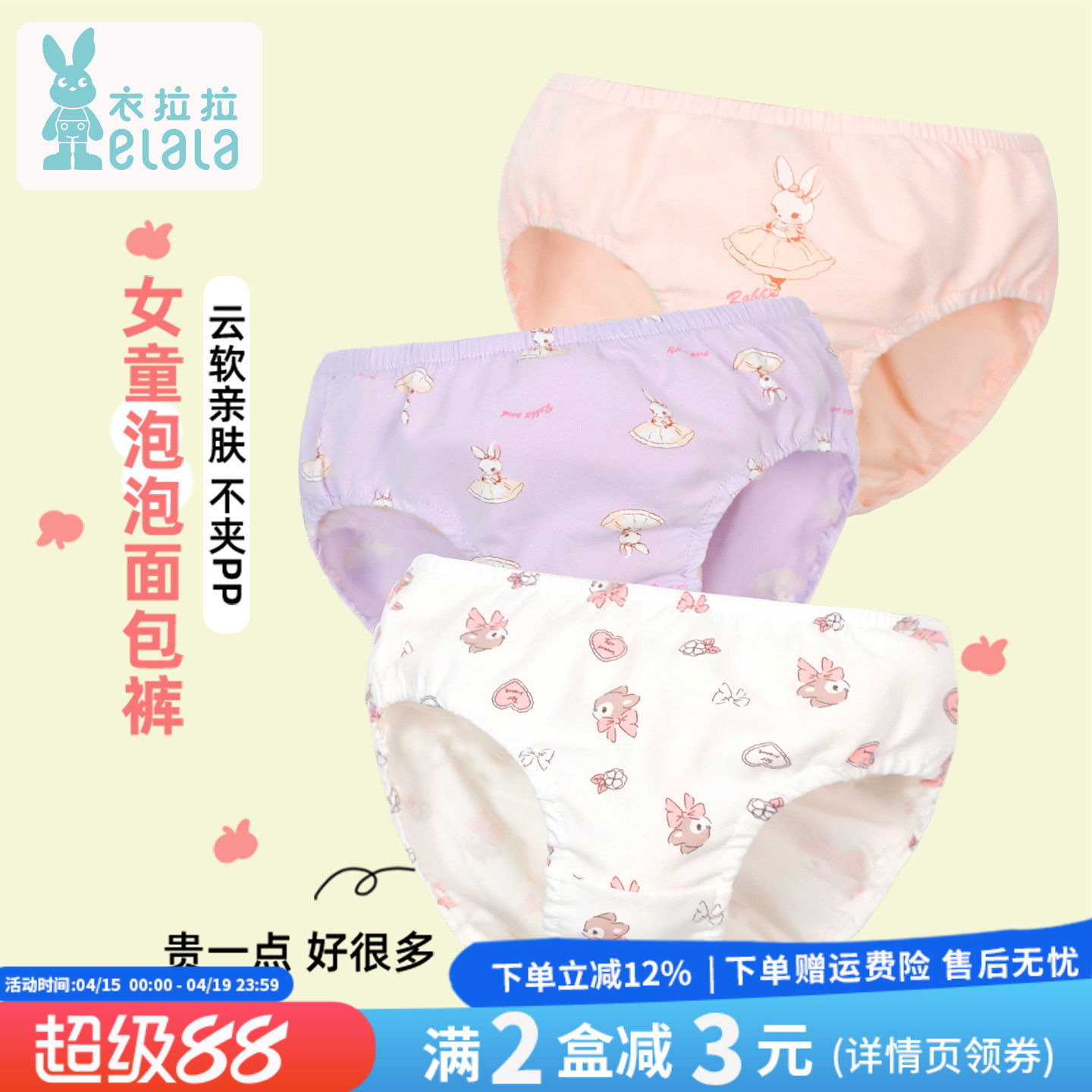 衣拉拉女童内裤儿童三角内裤婴幼儿纯棉面包裤宝宝泡泡短裤头2条