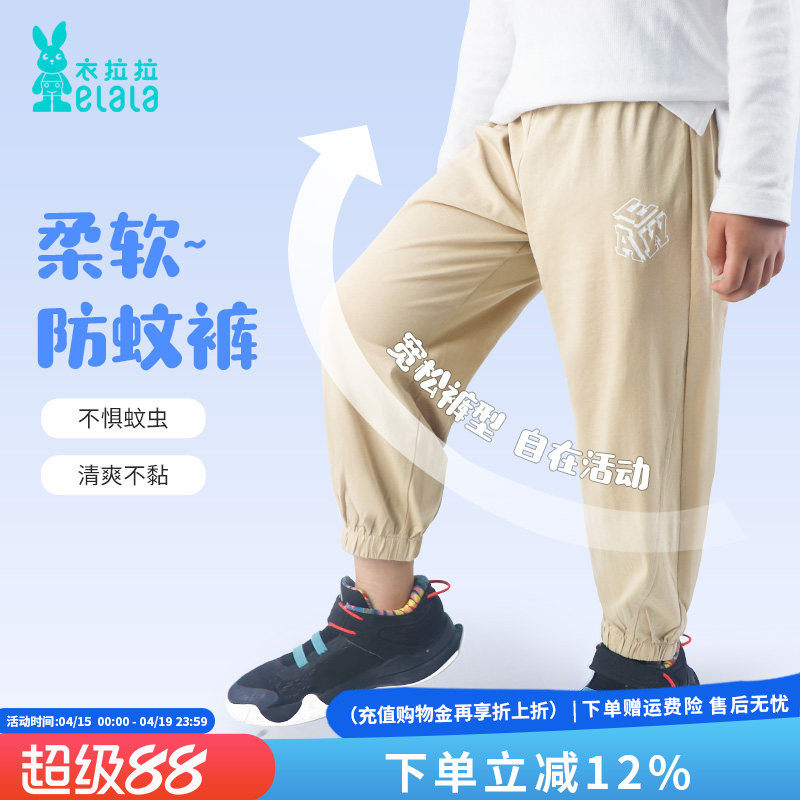 衣拉拉夏季新品儿童防蚊裤薄款纯棉男女童休闲裤小孩长裤宝宝裤子
