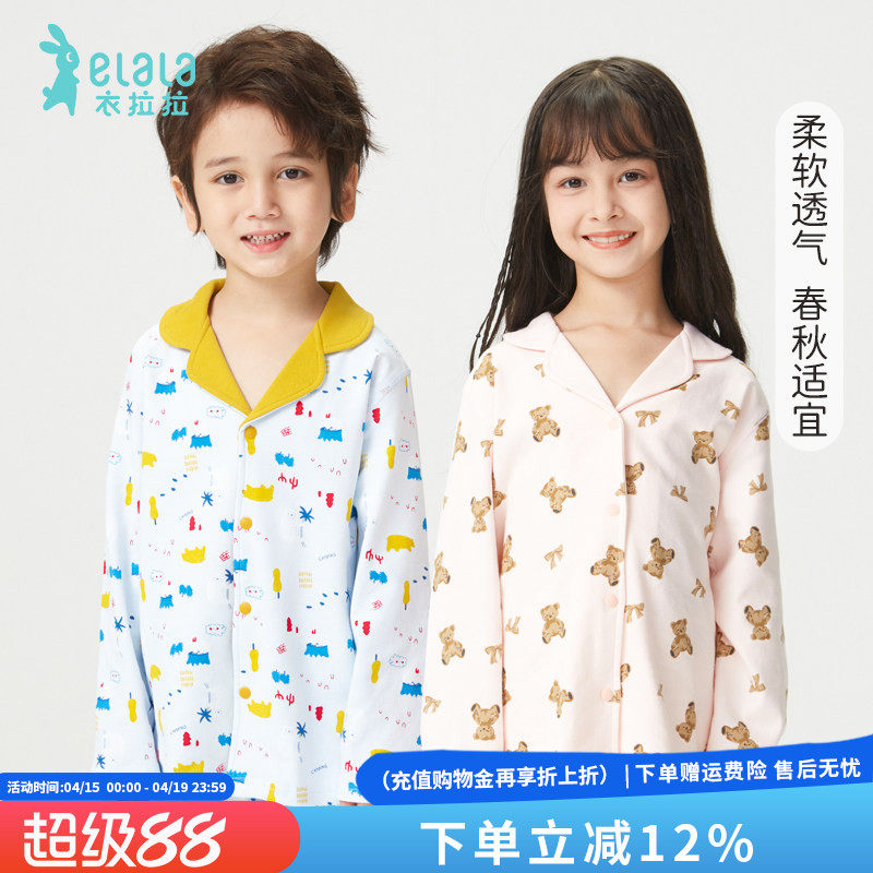 衣拉拉儿童睡衣套装纯棉1-17岁男童女童春秋款全棉开衫家居服宽松