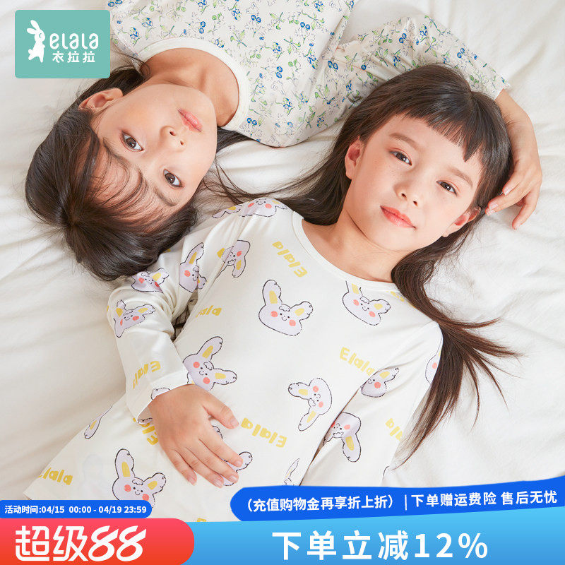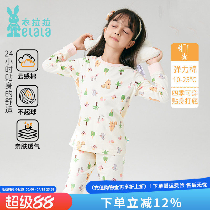 衣拉拉女童秋衣秋裤套装纯棉儿童保暖内衣套装宝宝家居服四季可穿