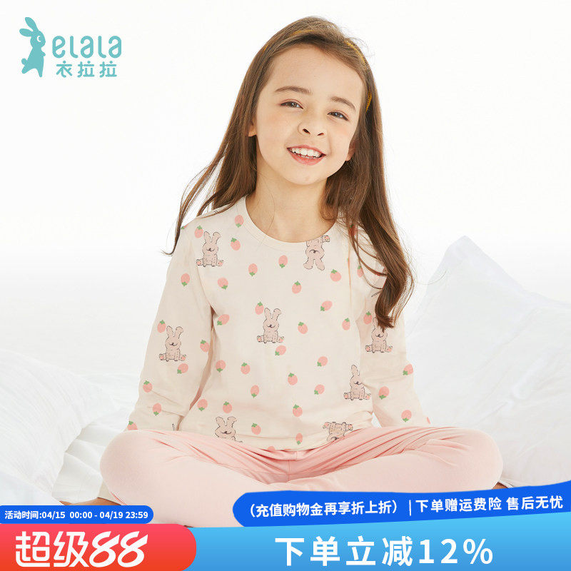 衣拉拉1-17岁女童秋衣秋裤纯棉四季儿童内衣套装宝宝家居服睡衣
