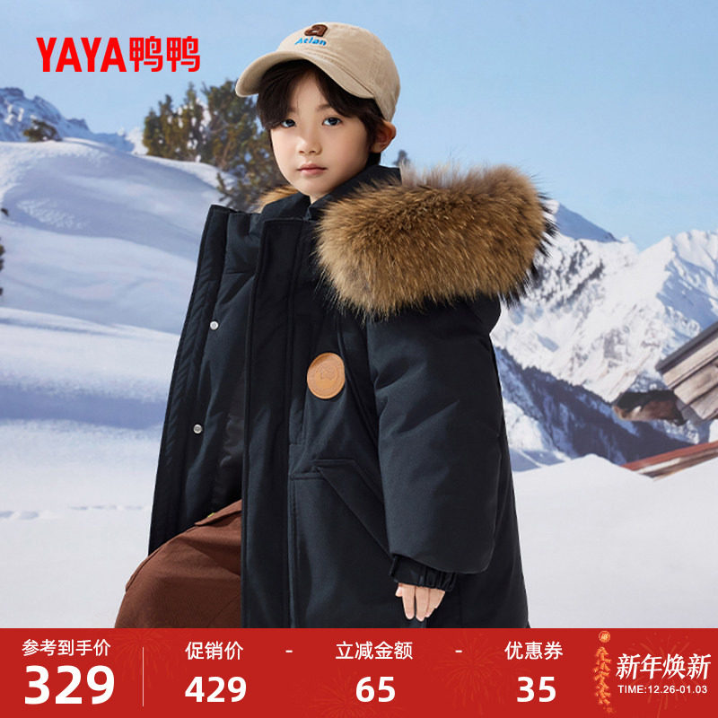 雅鹿2025新款洋气儿童羽绒服男童女童中长款大童冬季御寒加厚外套