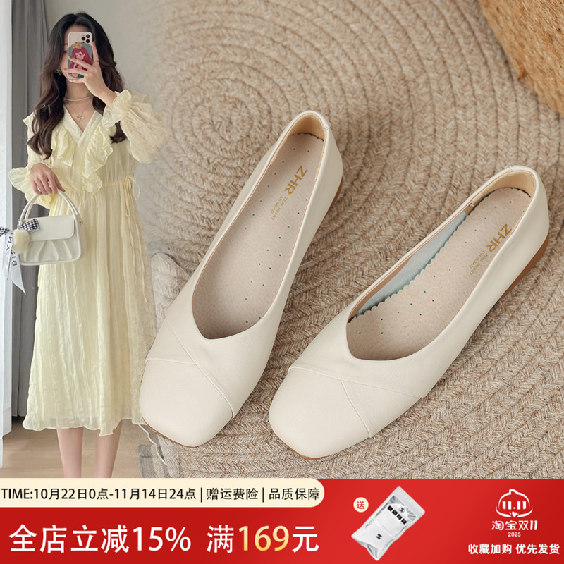 ZHR浅口单鞋女2025年夏季新款软底豆豆鞋法式方头一脚蹬休闲女鞋