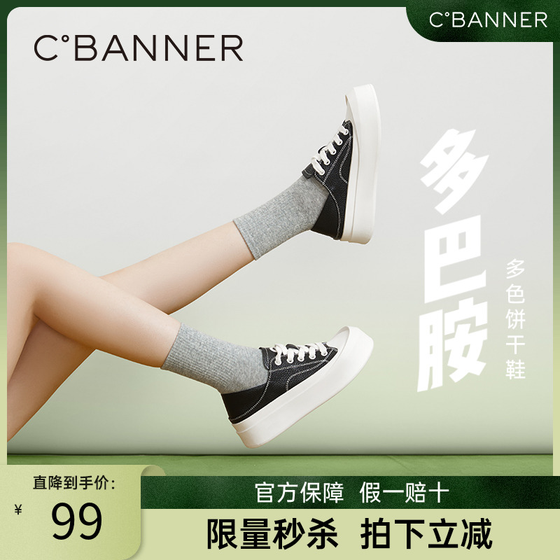 千百度厚底帆布鞋春秋气质板鞋内增高松糕两穿一脚蹬休闲女鞋百搭