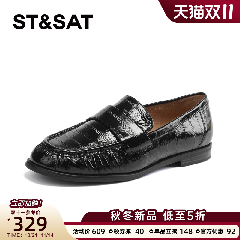 星期六优雅气质乐福鞋秋季新款纯色一脚蹬休闲女鞋SS33111130