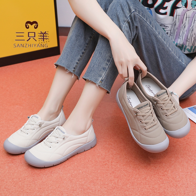 三只羊2025新款一脚蹬休闲女鞋妈妈鞋春秋软底小白鞋女健步鞋舒适