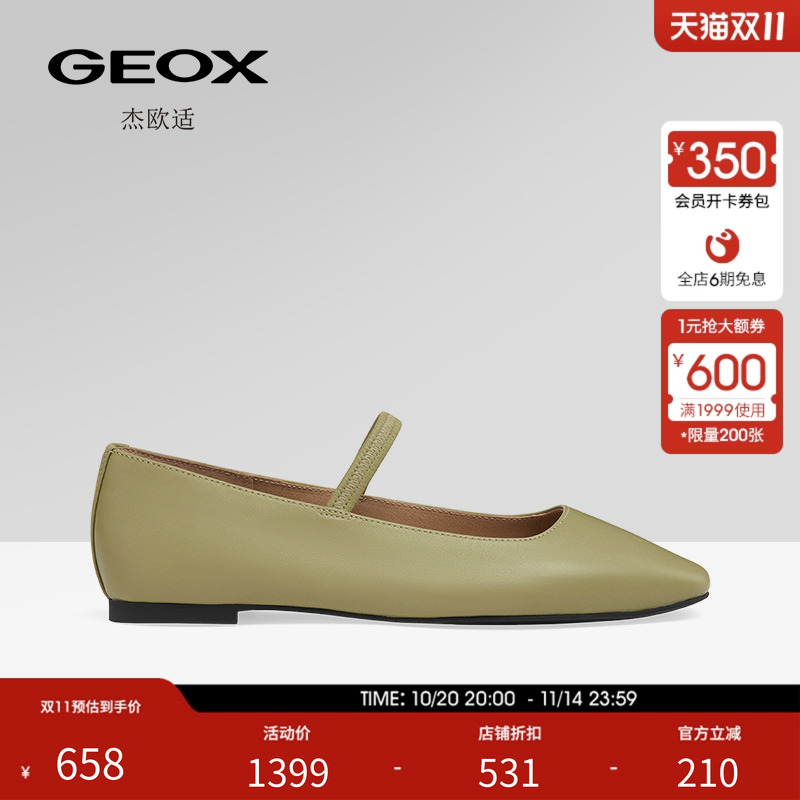 GEOX杰欧适女鞋2025夏季新款真皮单鞋浅口低跟平底一脚蹬休闲女鞋