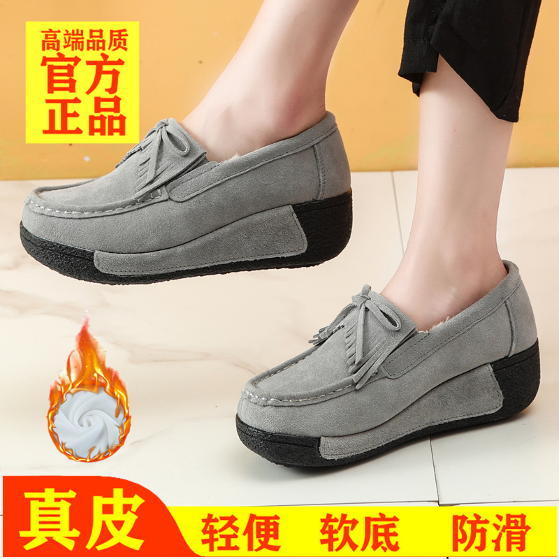 妈妈鞋厚底松糕鞋女加绒冬季毛毛鞋棉鞋磨砂老北京一脚蹬休闲女鞋