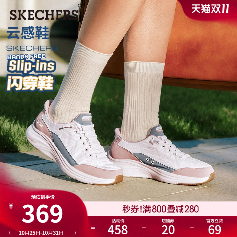 斯凯奇云感鞋|2025秋新款女鞋宽楦鞋闪穿鞋厚底一脚蹬休闲运动鞋