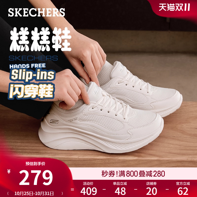 斯凯奇闪穿糕糕鞋|秋冬款女鞋厚底增高鞋一脚蹬休闲运动鞋慢跑鞋
