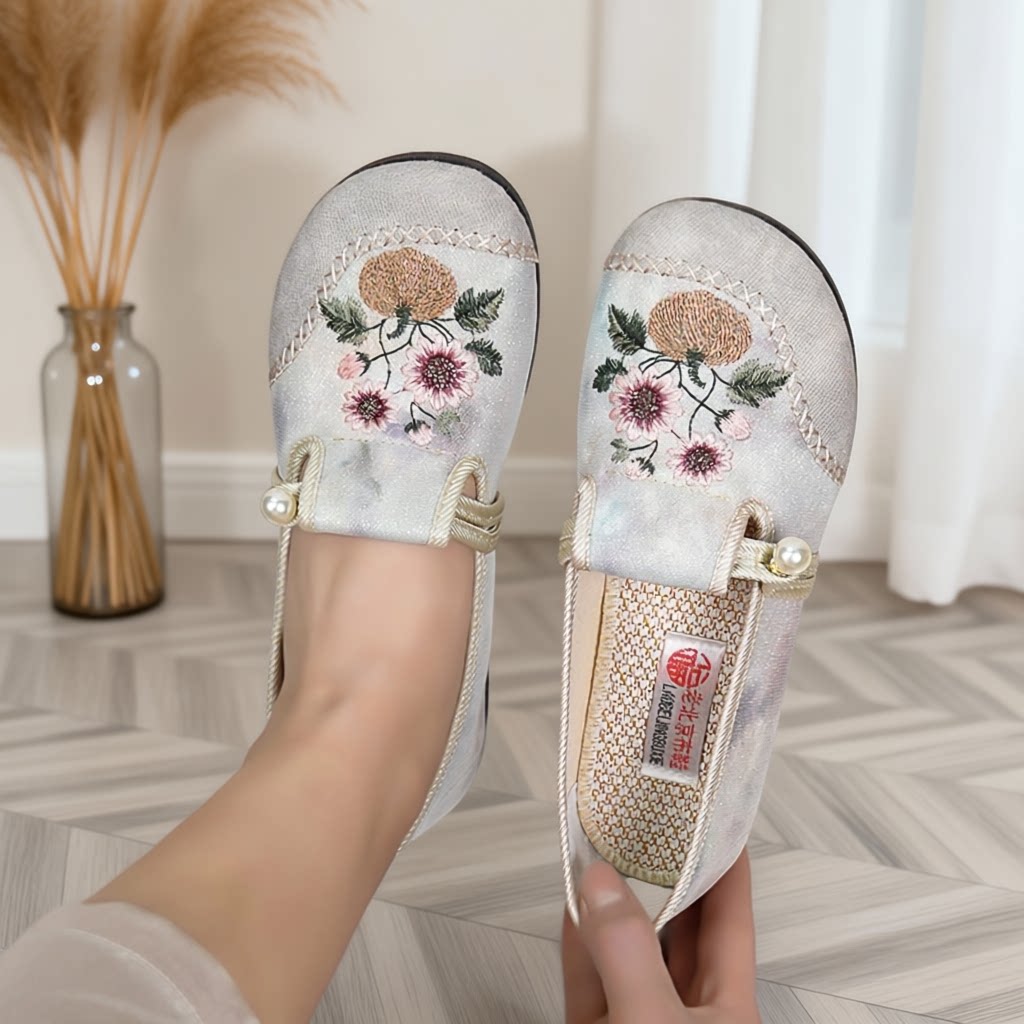 春季新款老北京布鞋新中式软底汉服绣花鞋透气防滑一脚蹬休闲女鞋