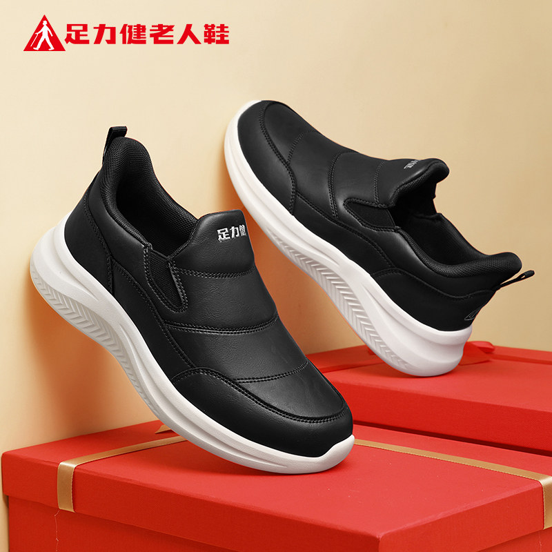 足力健老人鞋官方旗舰店正品中老年妈妈春季皮面一脚蹬休闲女鞋子