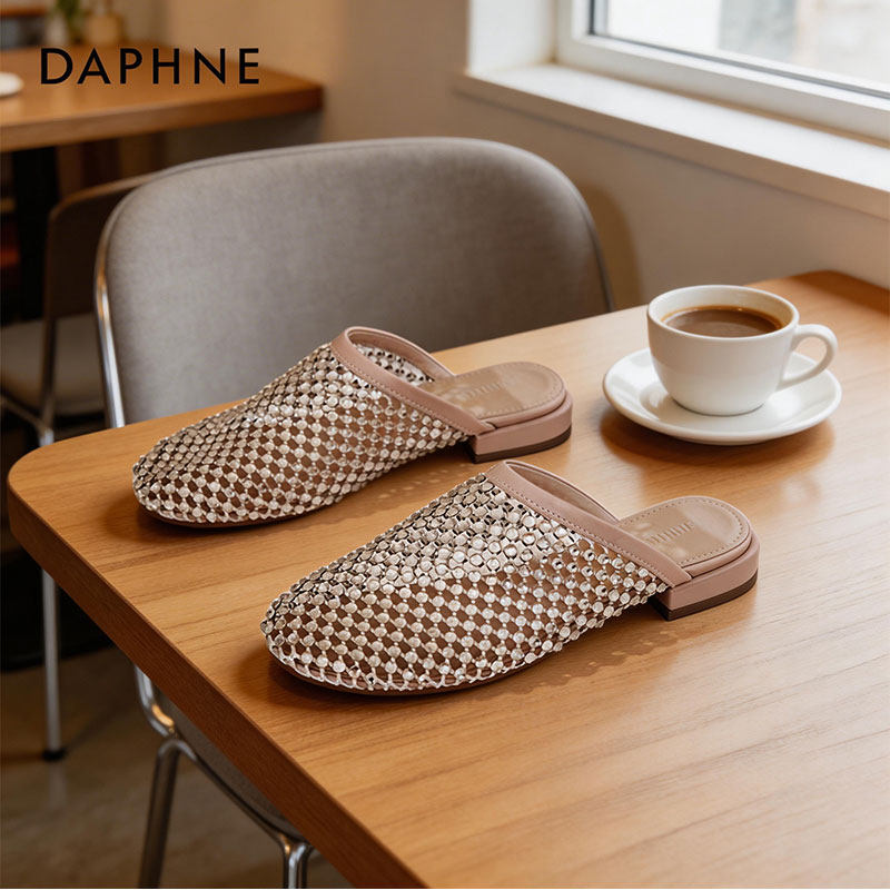 达芙妮轻奢水钻半拖鞋春夏新款爆款包头方跟一字拖一脚蹬休闲女鞋