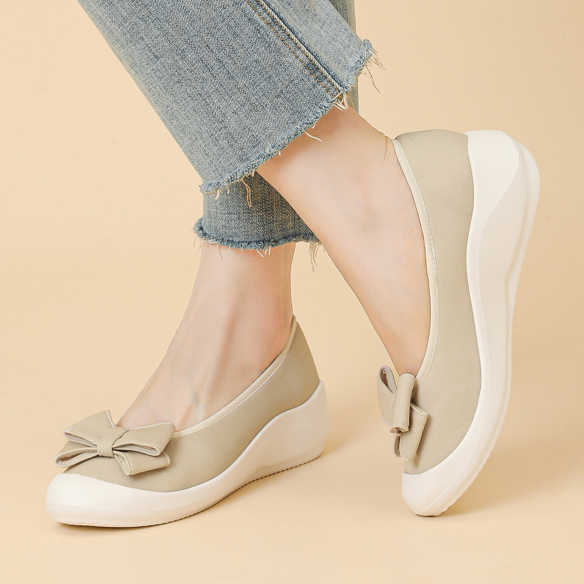 厚底蝴蝶结单鞋女超软透气软底舒适一脚蹬休闲女鞋不累脚坡跟瓢鞋